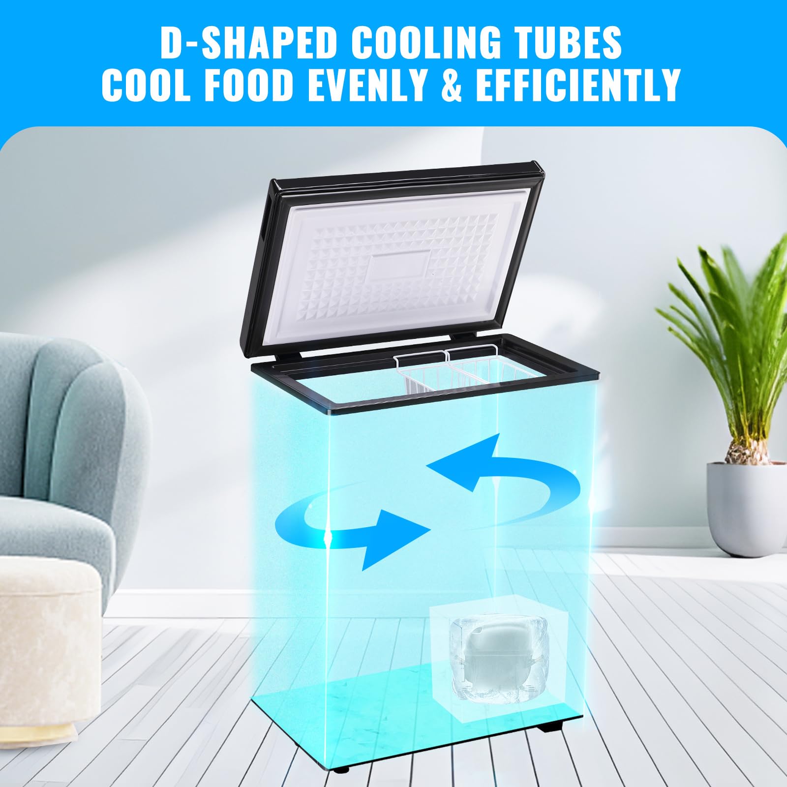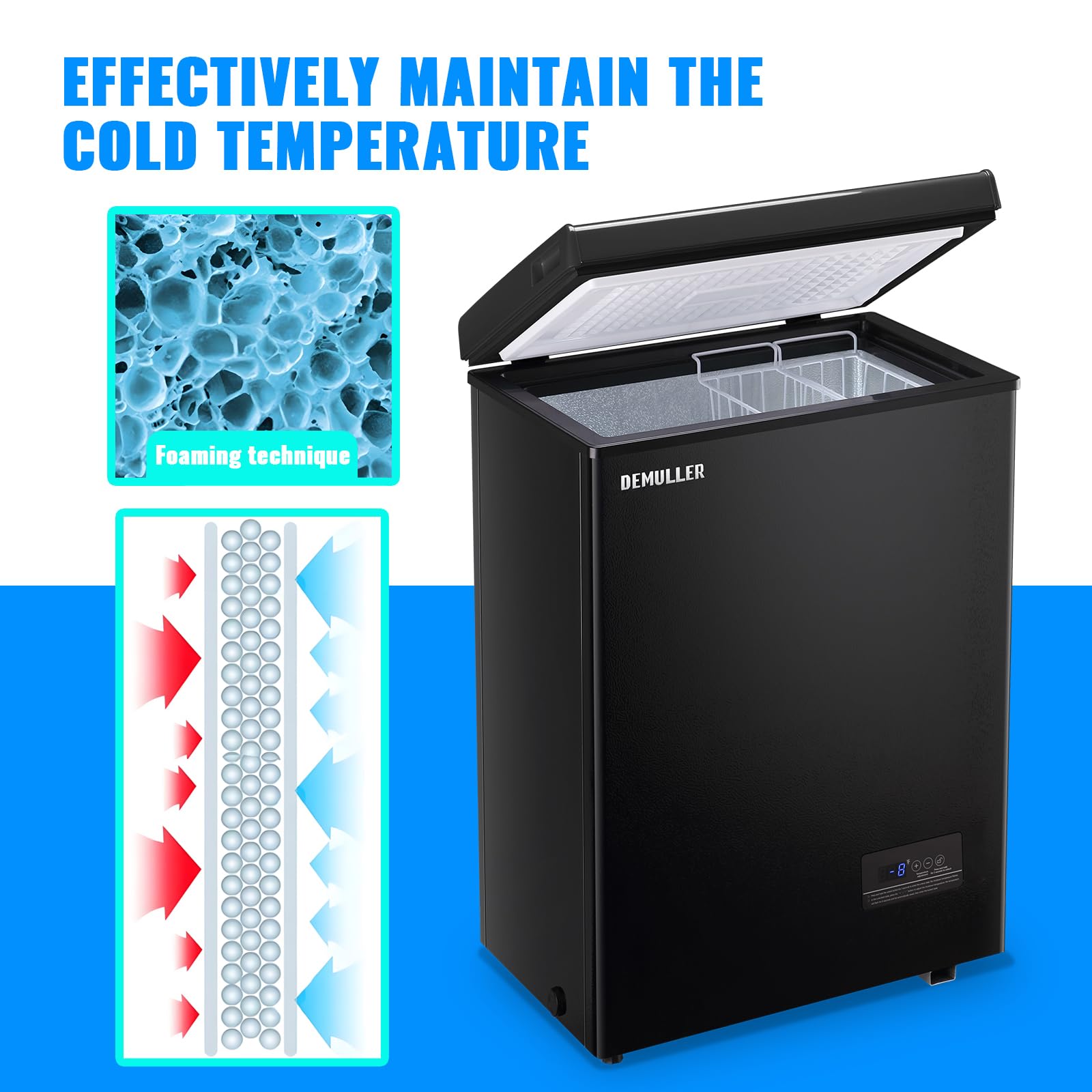 ENERGY-EFFICIENT DESIGN: The DEMULLER deep freezer has a powerful compressor, cools fast and evenly, and consumes only 0.44 kWh per day, making it a suitable choice for any home; And it's very quiet, running at just 40 dB