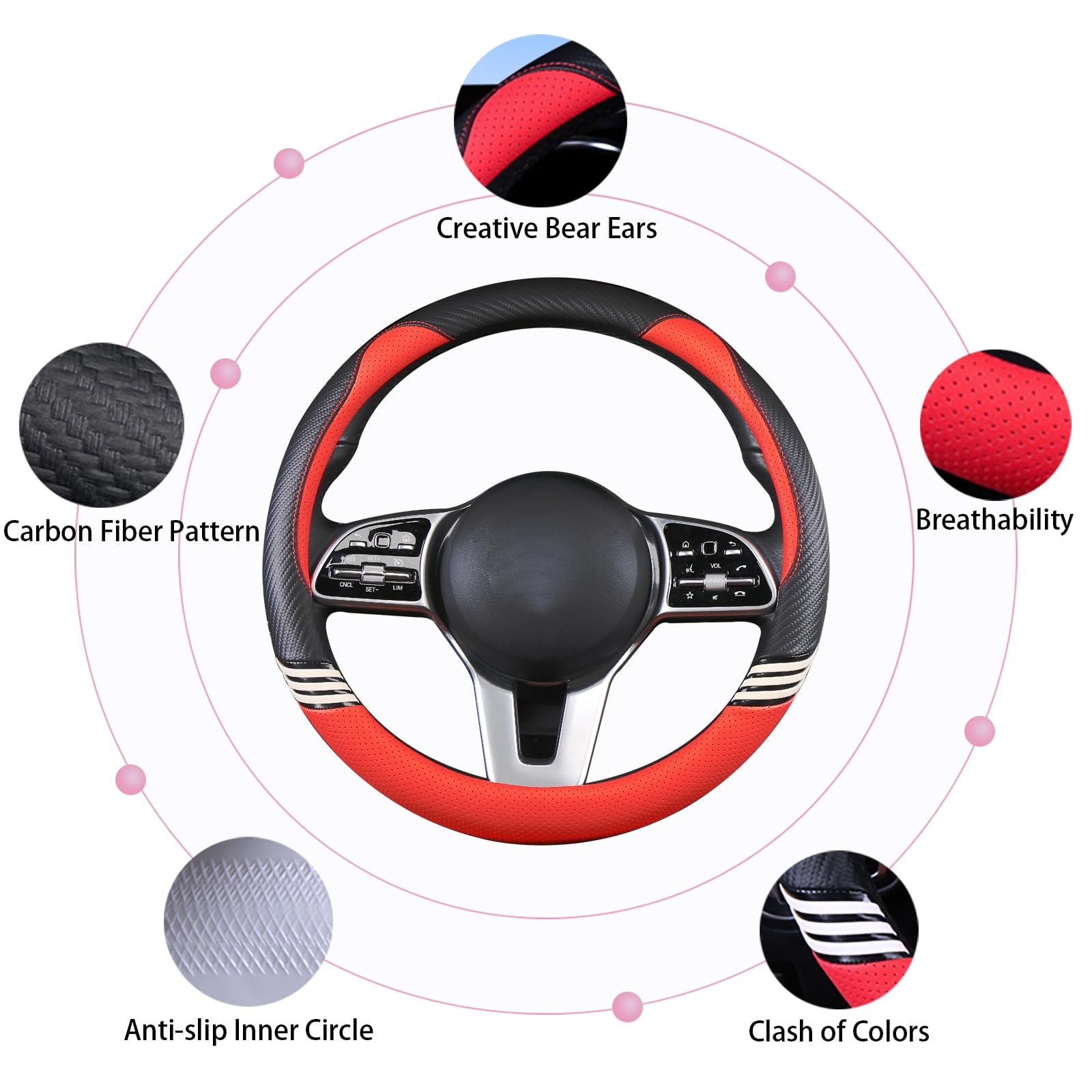 INCREASED SAFETY: This cute steering wheel cover can protect your hands from getting sweaty with a comfortable touch. The soft inner side of the cover can protect your steering wheel from scratches.