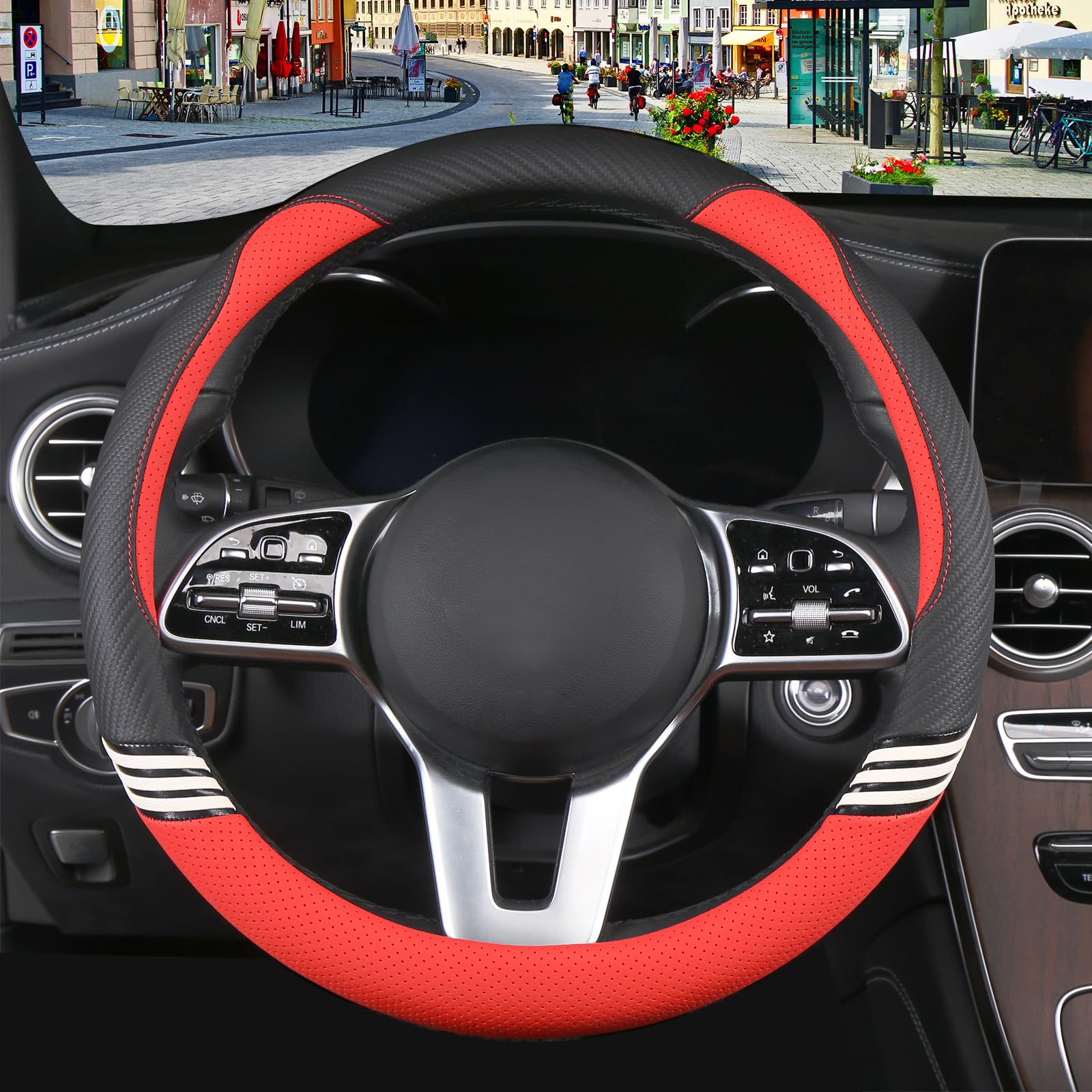 BREATHABLE LEATHER STEERING WHEEL COVER: Made out of superior breathable leather. Heat resistant, cold resistant and wear-resistant.
