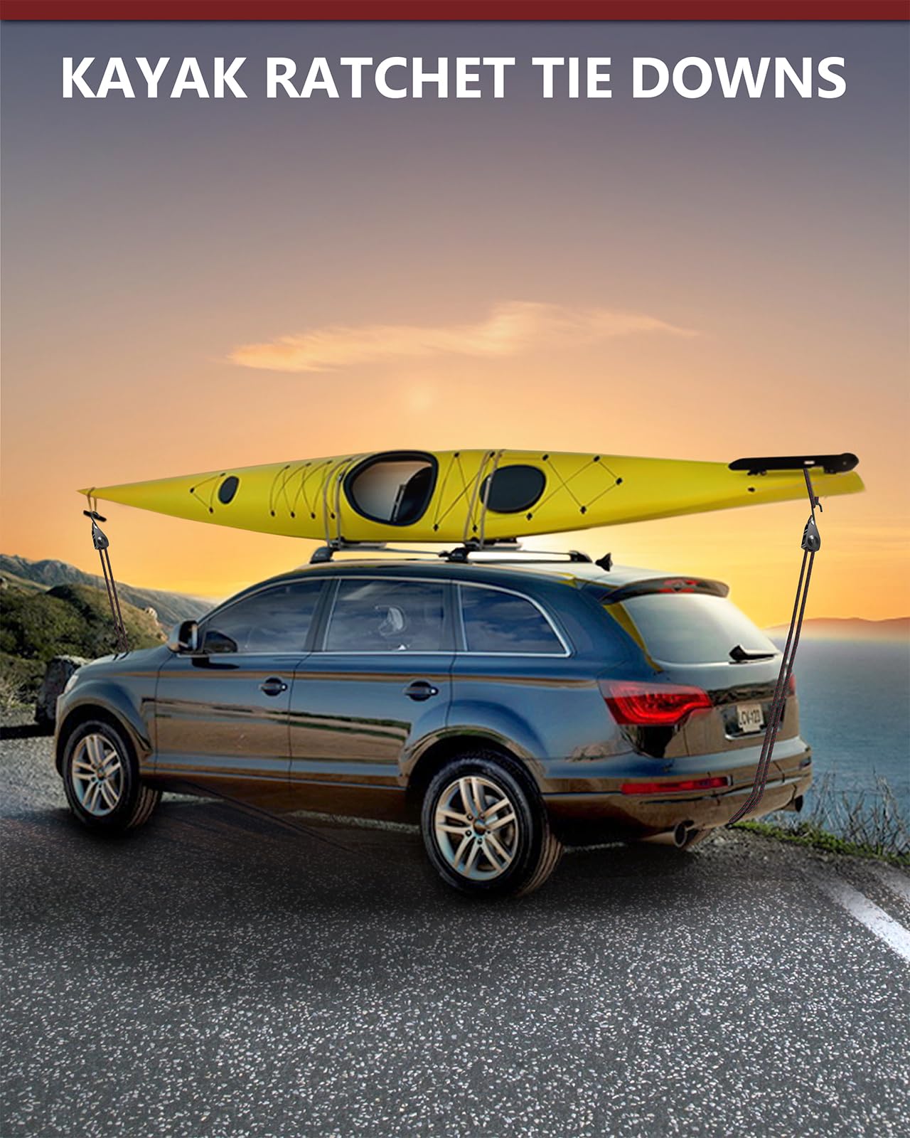 Built to Last: The kayak straps are durable, tear-resistant, and rust-proof with a weight load capacity of up to 150 lbs per ratchet and 300 lbs per 2-pack