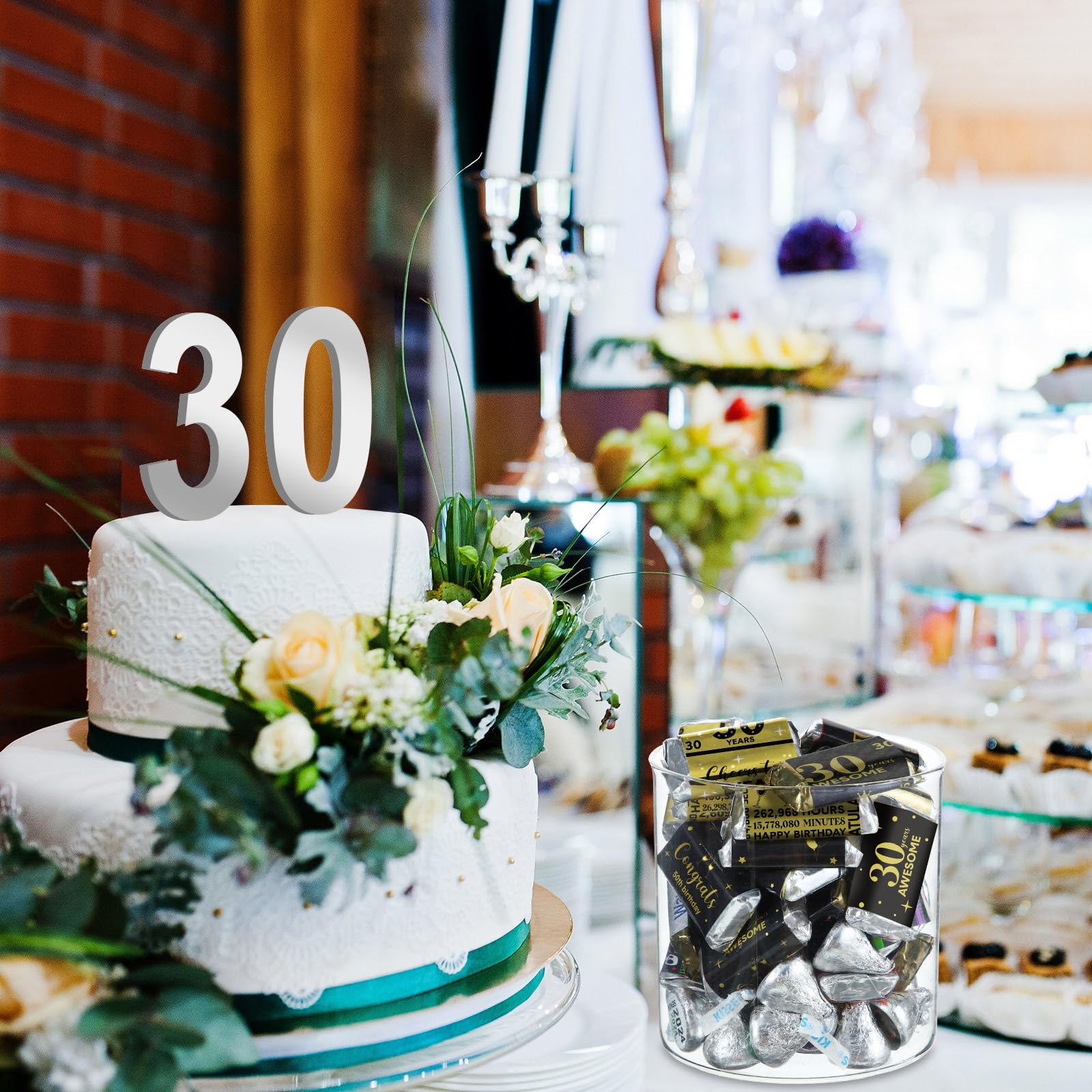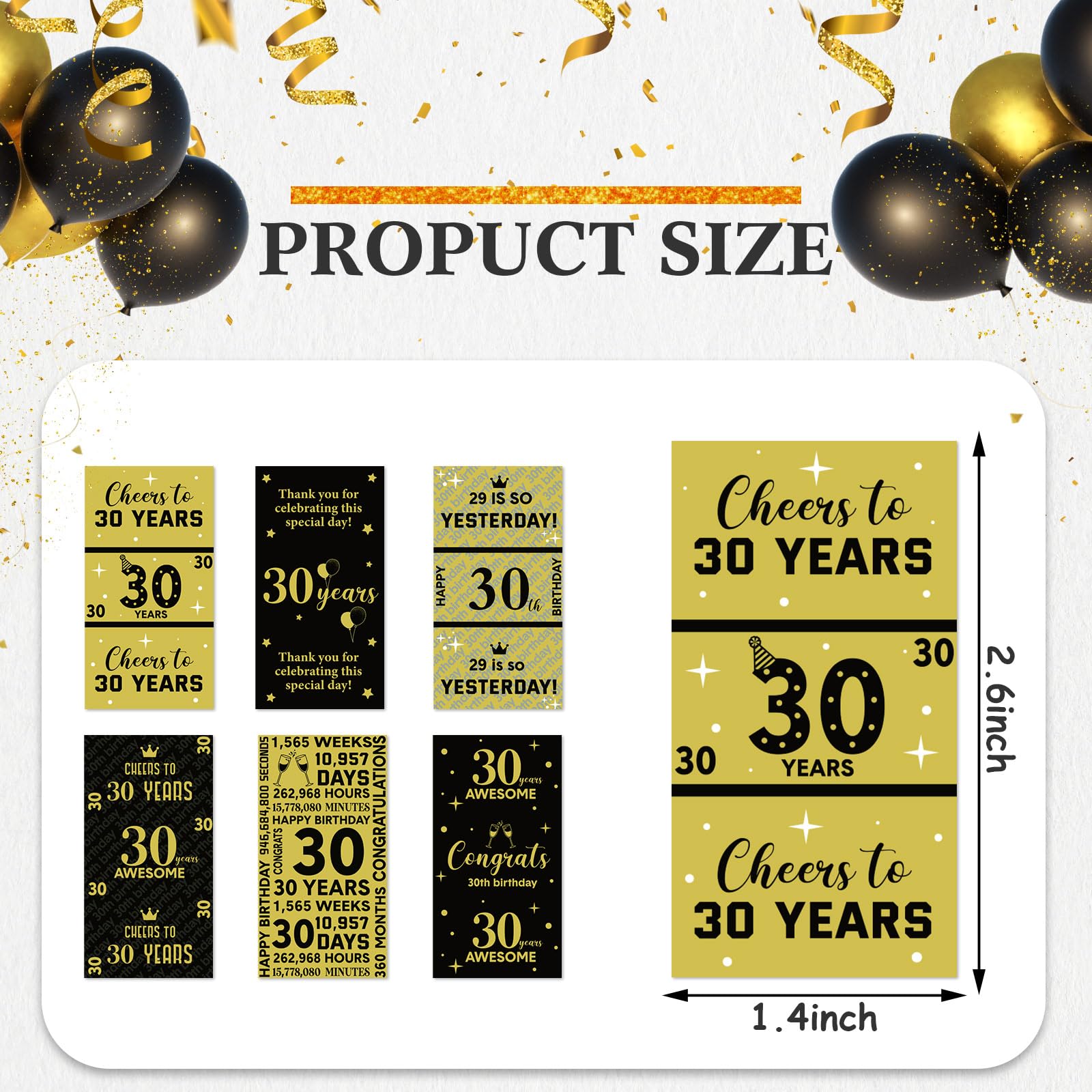 30 Years Elements: shiny metallic wrappers are full of classic 30th birthday elements, such as [cheers to 30 years], [30 years awesome], [congrats 30th birthday], [30 years] and so on, well catching guests' eyes and easily bringing you lively birthday party atmosphere