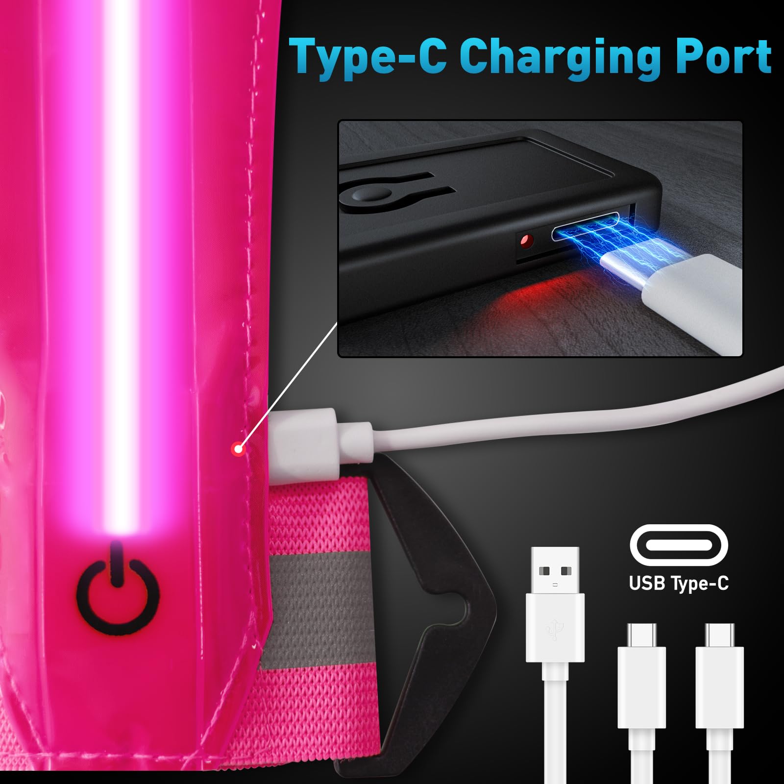 USB RECHARGEABLE LED LIGHT - 70% of pedestrian fatalities happen between 6pm & 6am. It’s a better alternative to traditional safety vests thanks to durable build-in led flash lights. 100 times safer than any other reflective bands at night.