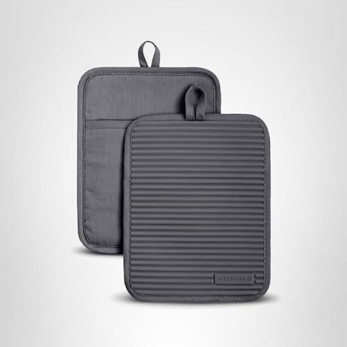 DURABLE, HEAT RESISTANT SILICONE - The KitchenAidRibbed Soft Silicone pot holders are heat resistant up to 500 degrees Fahrenheit to safely shield hands from the heat while cooking and handling hot pans and dishes.