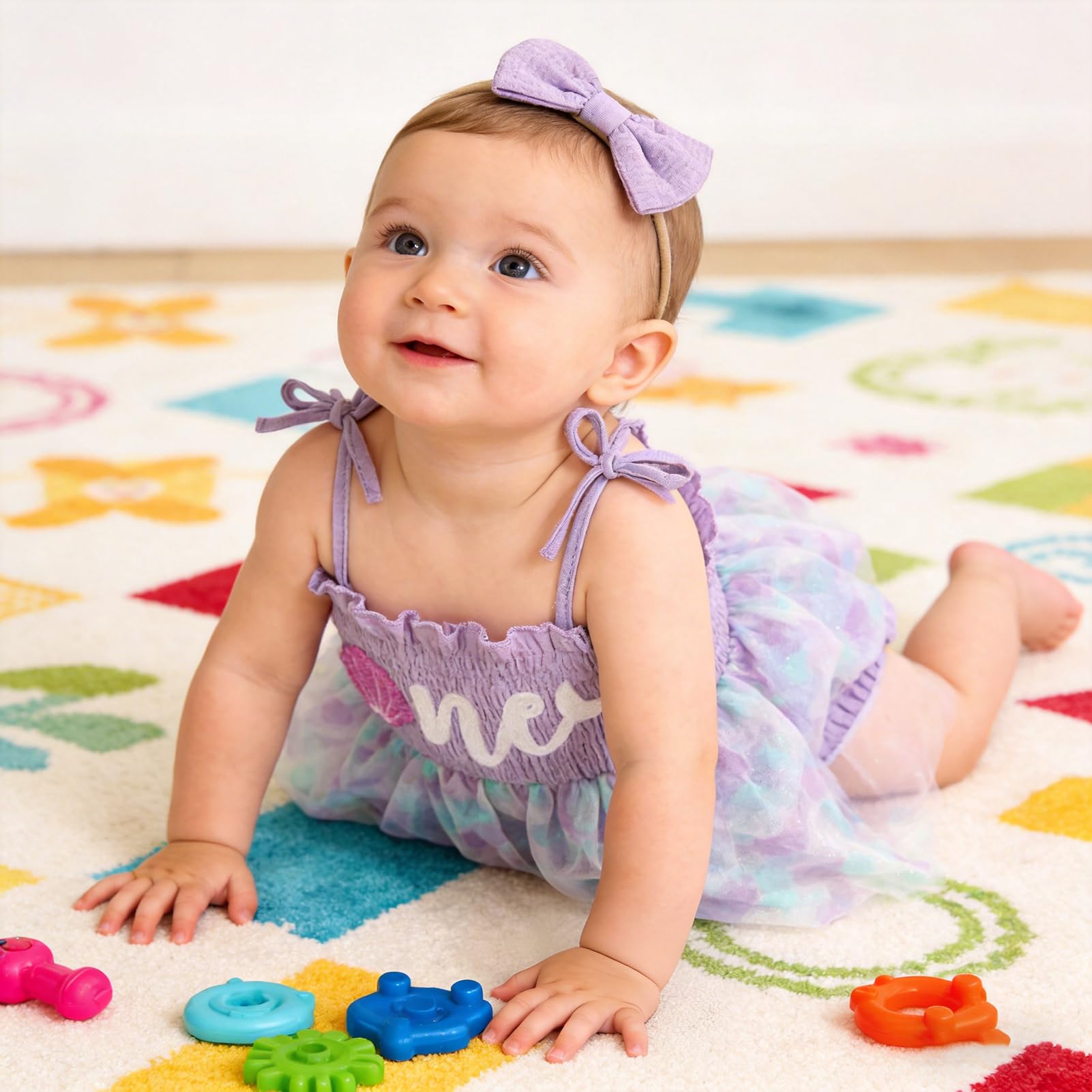 Material: Baby girls birthday romper made of Cotton+tulle fabric, super soft and breathable, comfortable absorbent to wear, friendly to baby's skin, cares for newborns too.
