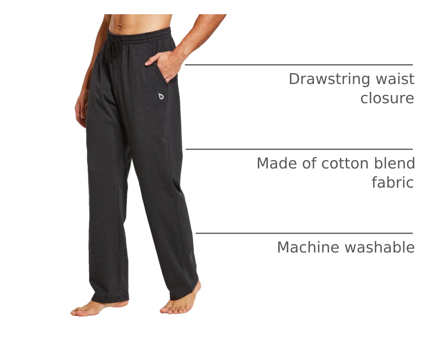Multi-Activity Performance:BALEAF men's open bottom pajamas yoga sweatpant provides a comfortable and free sports experience, perfect for yoga, running, hiking, sleep, gym.