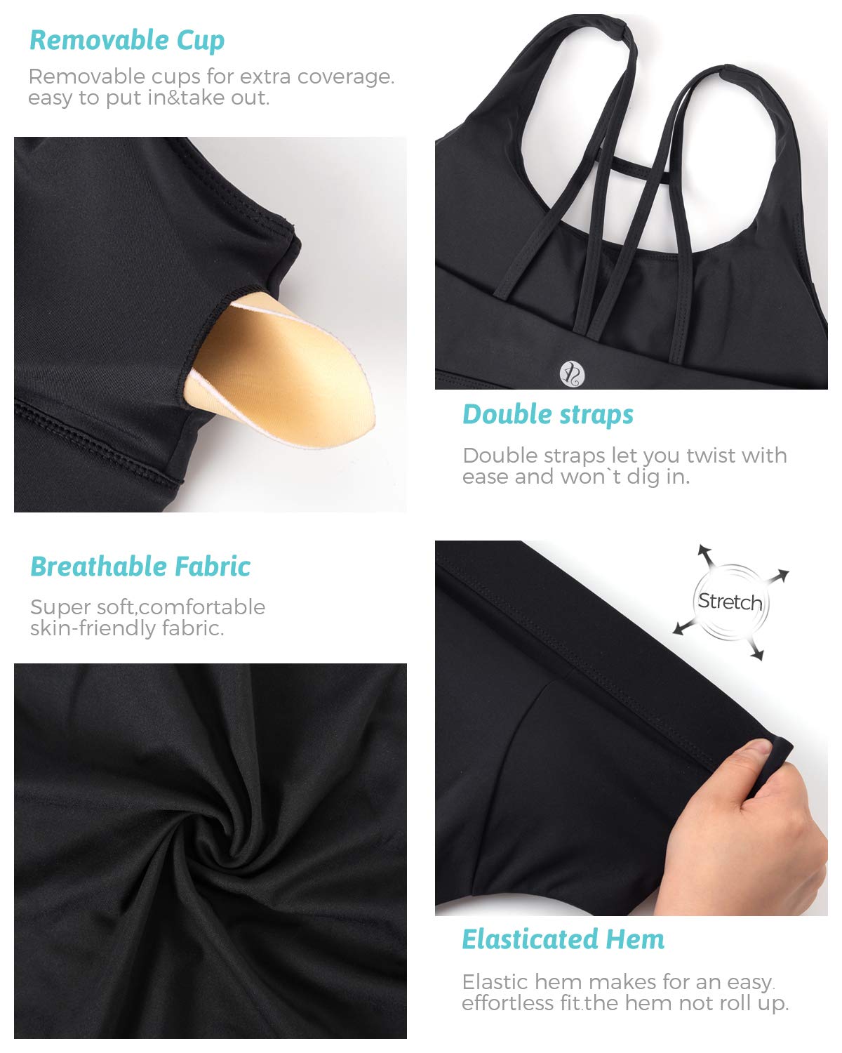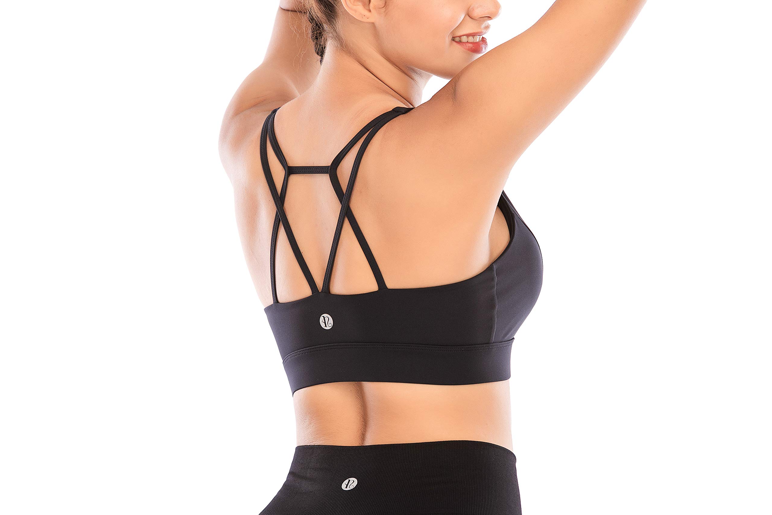 √YOUR SECURE FIT - Strappy design meets sporty style. Super soft scoop neckline with light, removable pads. Open cutout back styling sports bras for women medium support, widen band underneath the breast ensures a tight secure fit. Removable cups for extra coverage. The removable vertical cotton bra pads are easy to clean.The padded sports bra which always retains its shape and prevent bra bulges, caresses your figure to adjust to your curves.