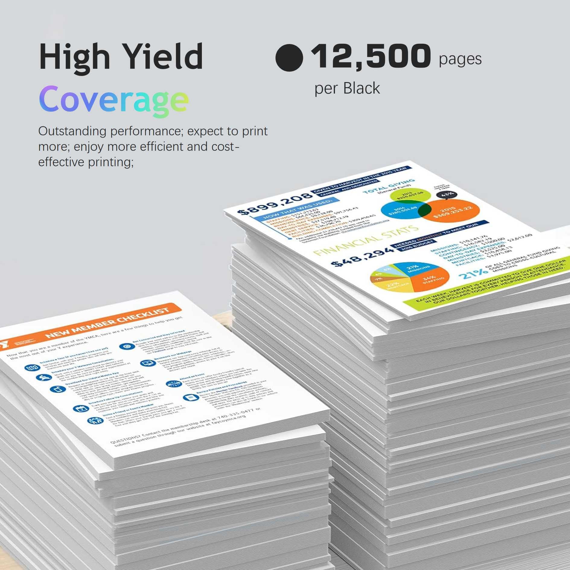 Page Yield: 12,500 Pages per toner cartridge at 5% coverage letter / A4.