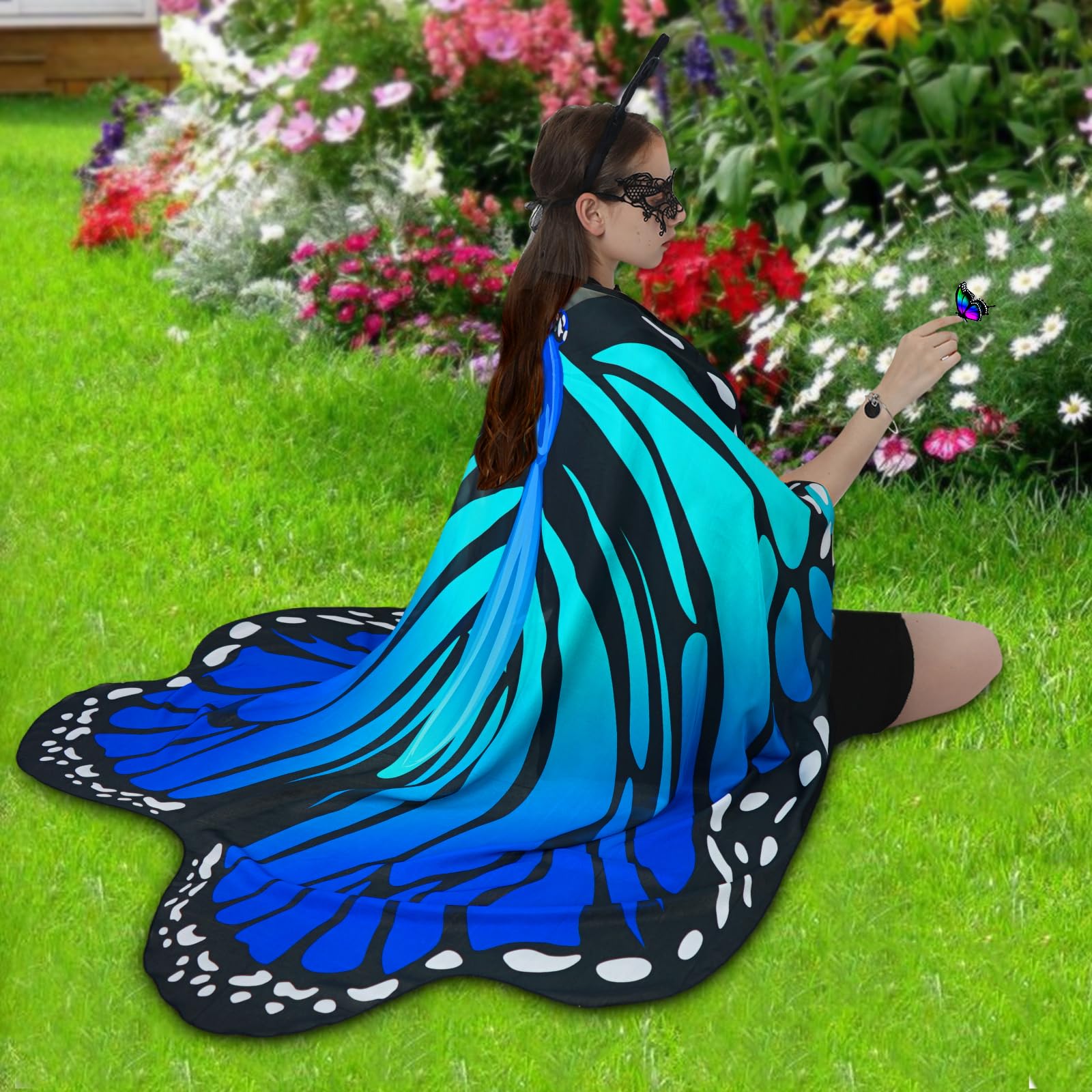 🦋Elegant Butterfly/Moth Wings-This adult women's butterfly/moth wings cape is designed with bright color,clear pattern and fashionable design.This halloween costumes for women in a soft and airy fabric,which delivers a lifelike fluttering effect.The butterfly/mothman costume with adjustable ties at the neck and the wings have elasticized finger loops at the top to attach fingers,keep it pretty.It is perfect for Halloween and cosplay to beach parties and dance performances