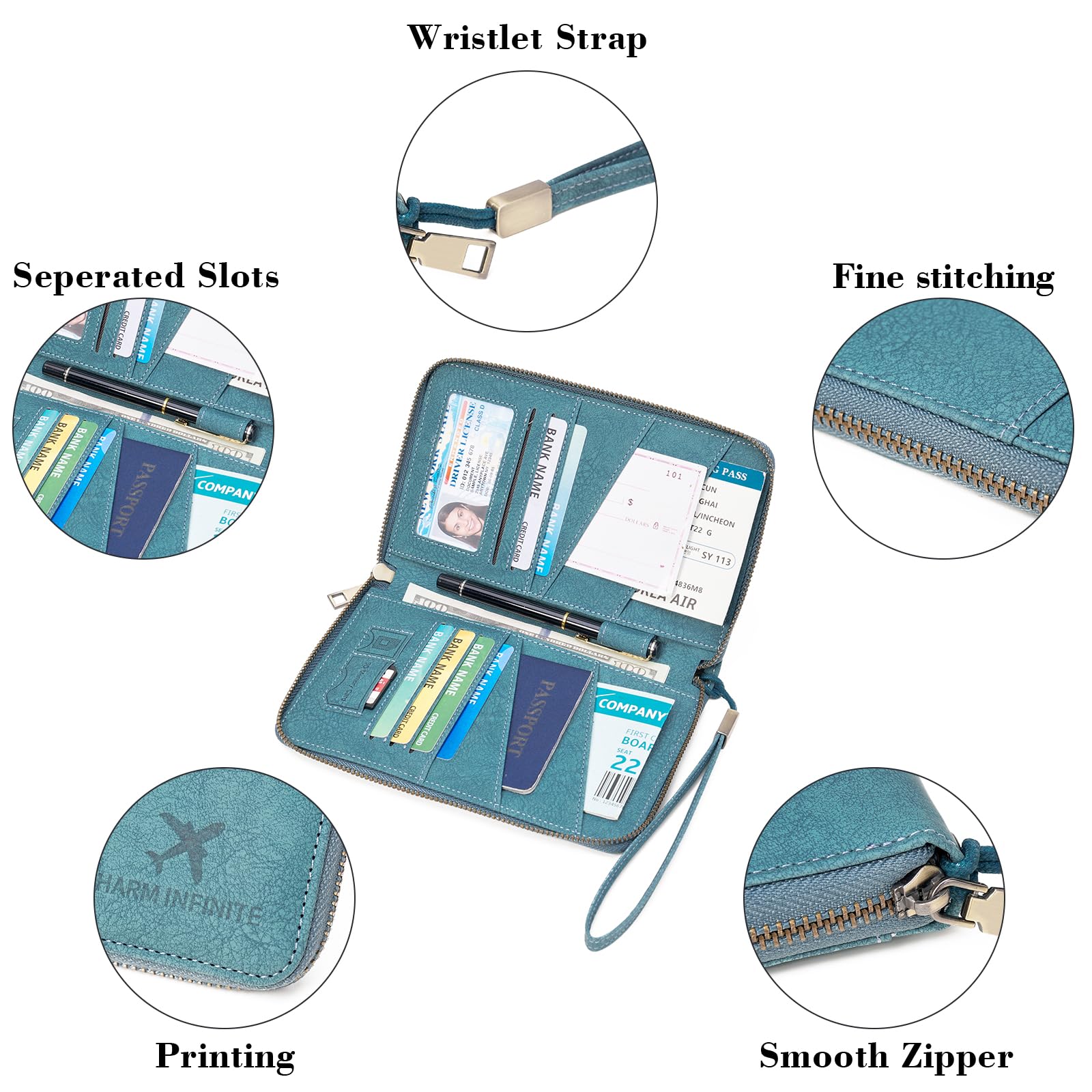 Roomy and Functional: With 4 spots for your cards, 2 SIM card slots, 2 ticket slots,1 ID window, 1 inserted pen slot, 5 slots for your passport and other travel documents, which is a great place to keep everything in one place, and also a good companion for your travel