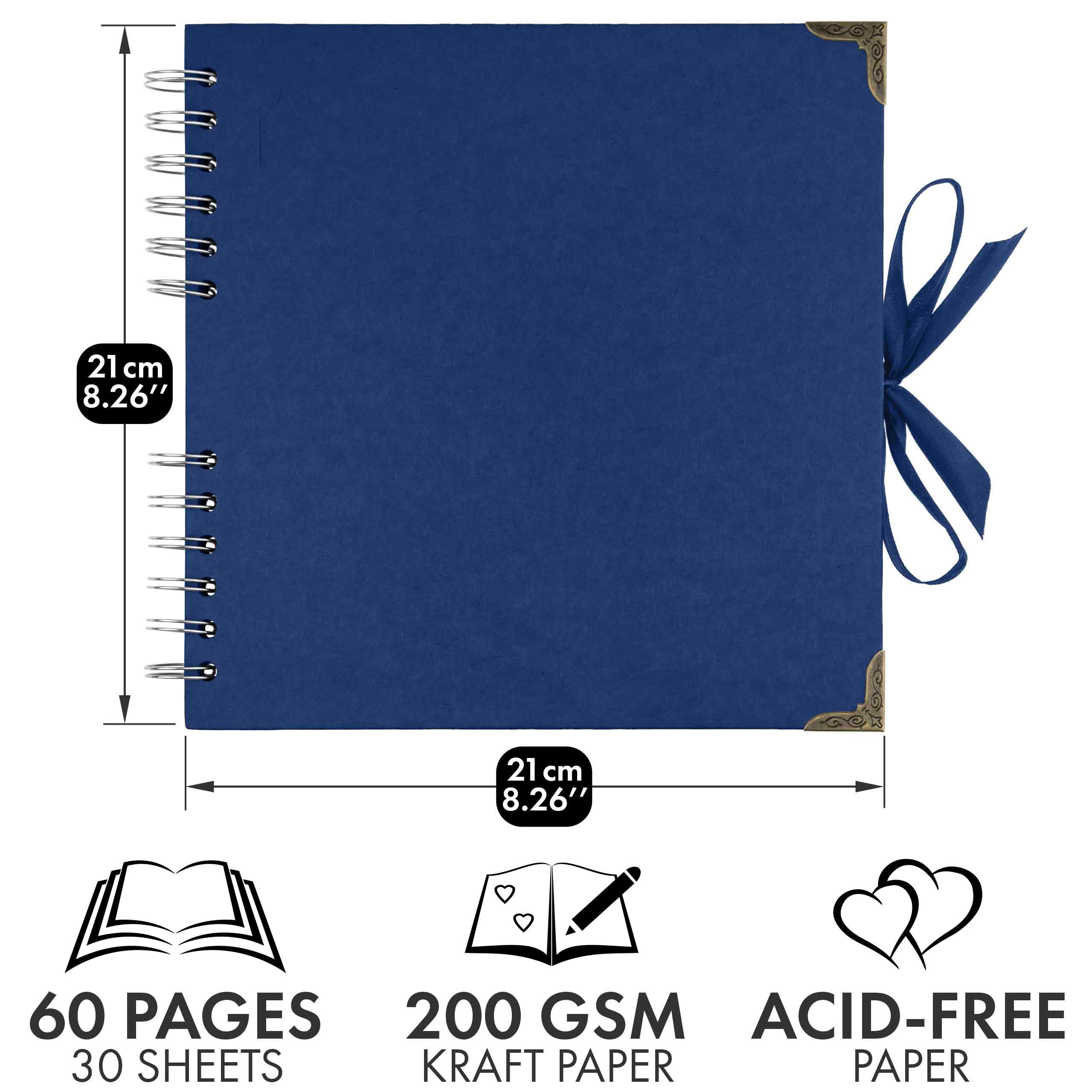 This 8 x 8 Inch scrapbooks is durable and suitable for long term storage for you and your loved ones beautiful memories. It has 30 sheets, 60 pages of high quality thick paper, designed with ribbon closure, hard cover and corner protectors
