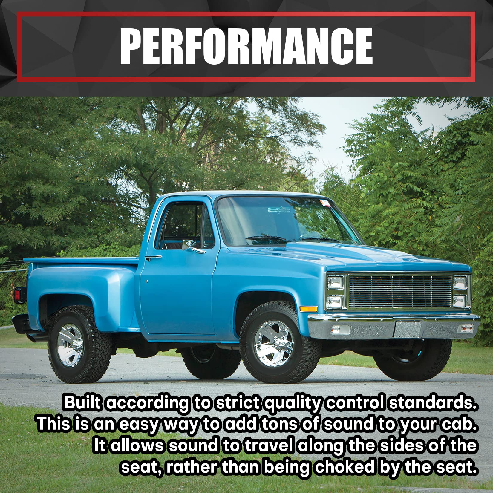 [Performance]: Built according to strict quality control standards. This is an easy way to add tons of sound to your cab. It allows sound to travel along the sides of the seat, rather than being choked by the seat
