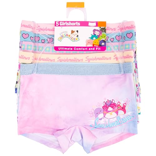 Description MULTIPLE FABRICATIONS: The Squishmallows 7-Pack and 10-pack underwear for girls is 100% ultra-soft combed cotton jersey knit panties. The 4 and 5pk girl boxer-brief is a brand new silhouette for us - the Poly-Spandex Blend of the body allows for an active athletic feel with a cotton gusset in the crotch for all day wear and comfort. All pairs included are fun, colorful and adds a unique beginning to every day. Choose from the 4-Pack, 7-Pack or 10-Pack Amazon Exclusive Pack size with your favorite Squishmallows Characters including Cam the Calico, Lola, Fifi, Winston, and MORE! With plenty prints included to choose from you can have a different Squishmallow underwear everyday of the week! All panties all 100% combed cotton. Perfect for potty training, birthdays and holidays - or just everyday! All are 100% combed cotton super soft jersey knit.