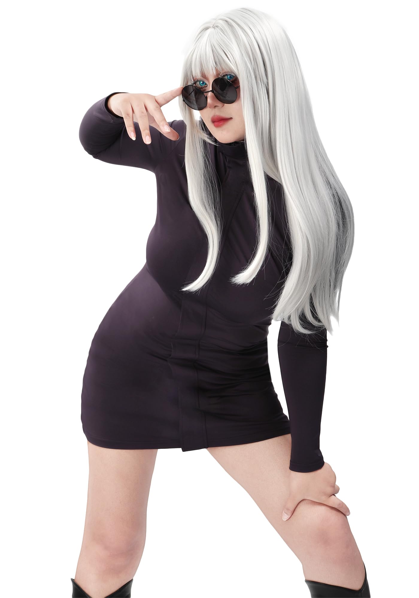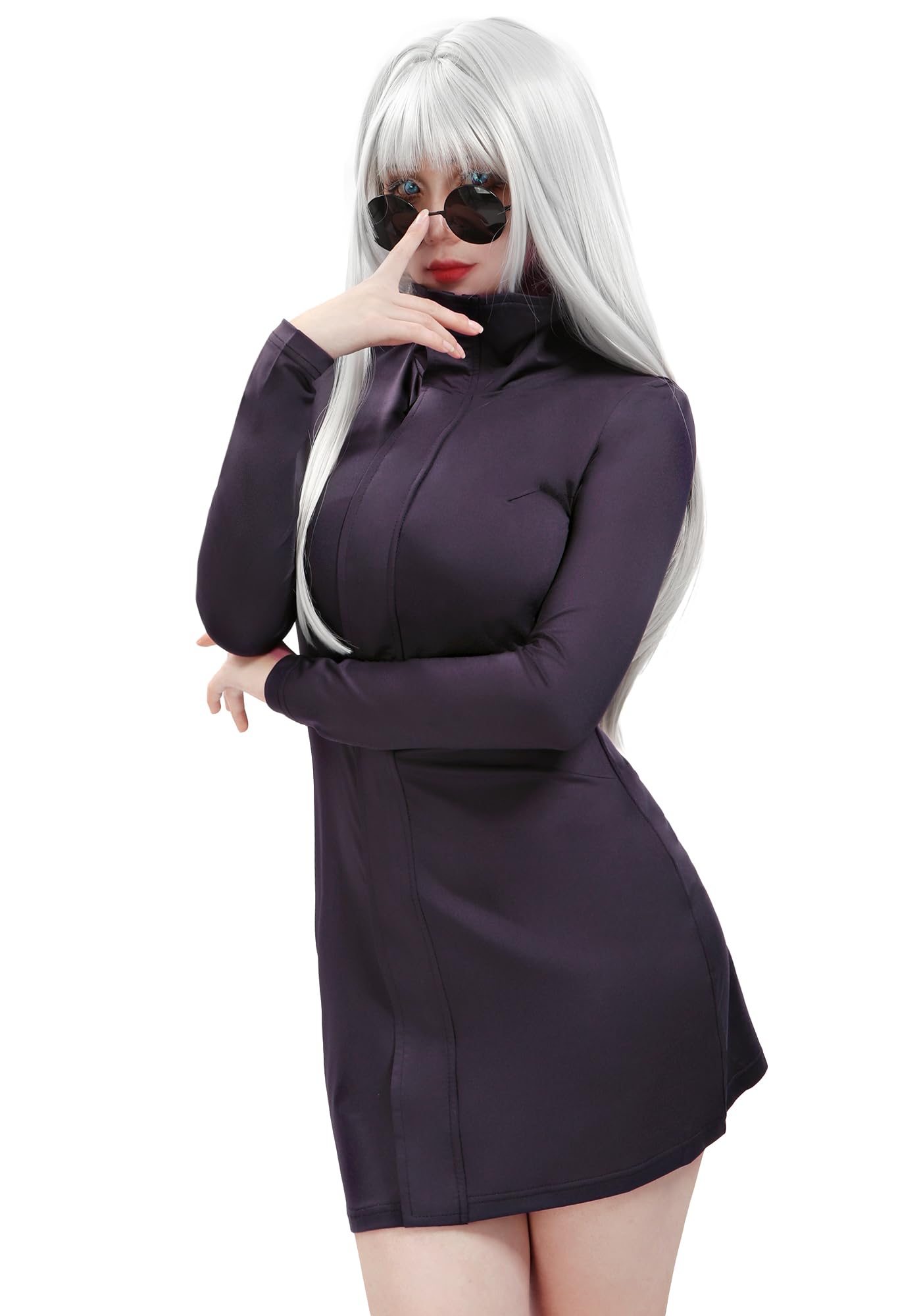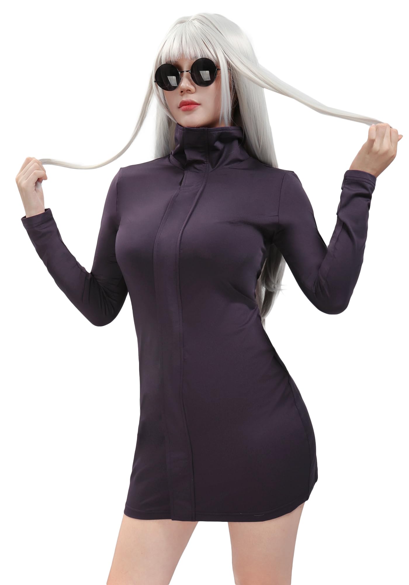 Occasion:Cosplay costume dark purple dress, comes with a pair of glasses to complete the look, suitable for Halloween, Christmas, costume parties and everday wear