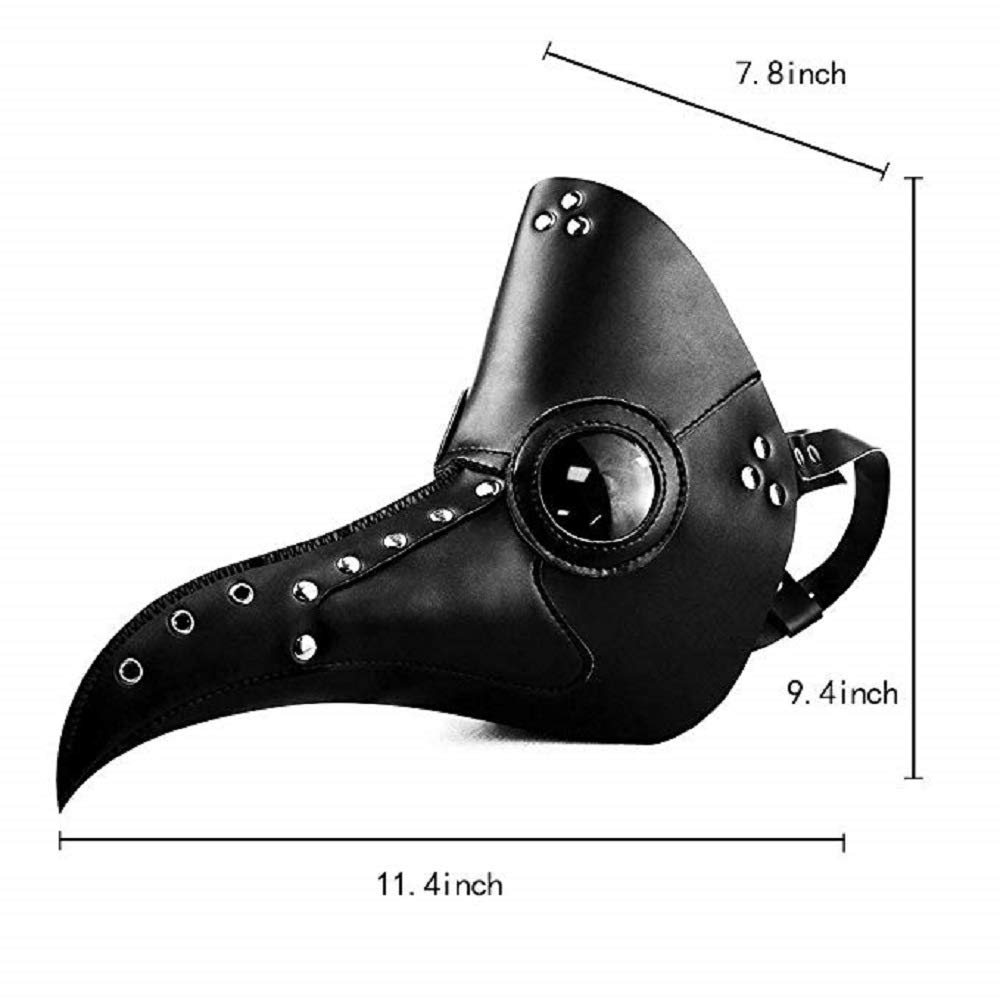 Mask size: 11.4(L) x 7.8(W) x 9.4(H) inch, the Halloween plague mask has an adjustable headband on the back, perfect for most women men and kids, teens