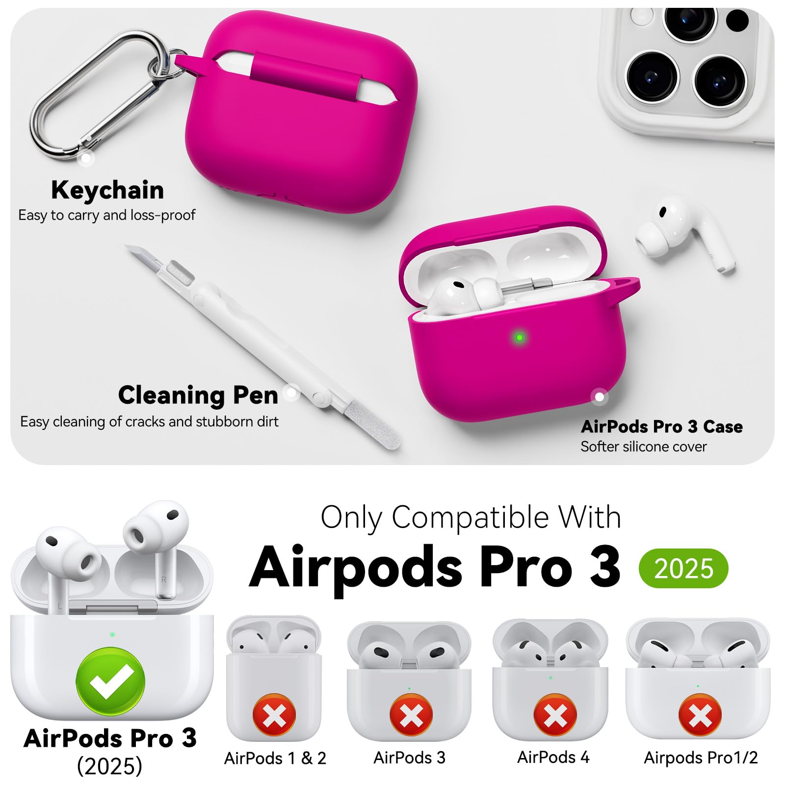 【Compatible Models】:This protective case is only compatible with Airpods Pro 3rd Generation (2025) USB-C, (Note:Airpods Pro 3 is not included).