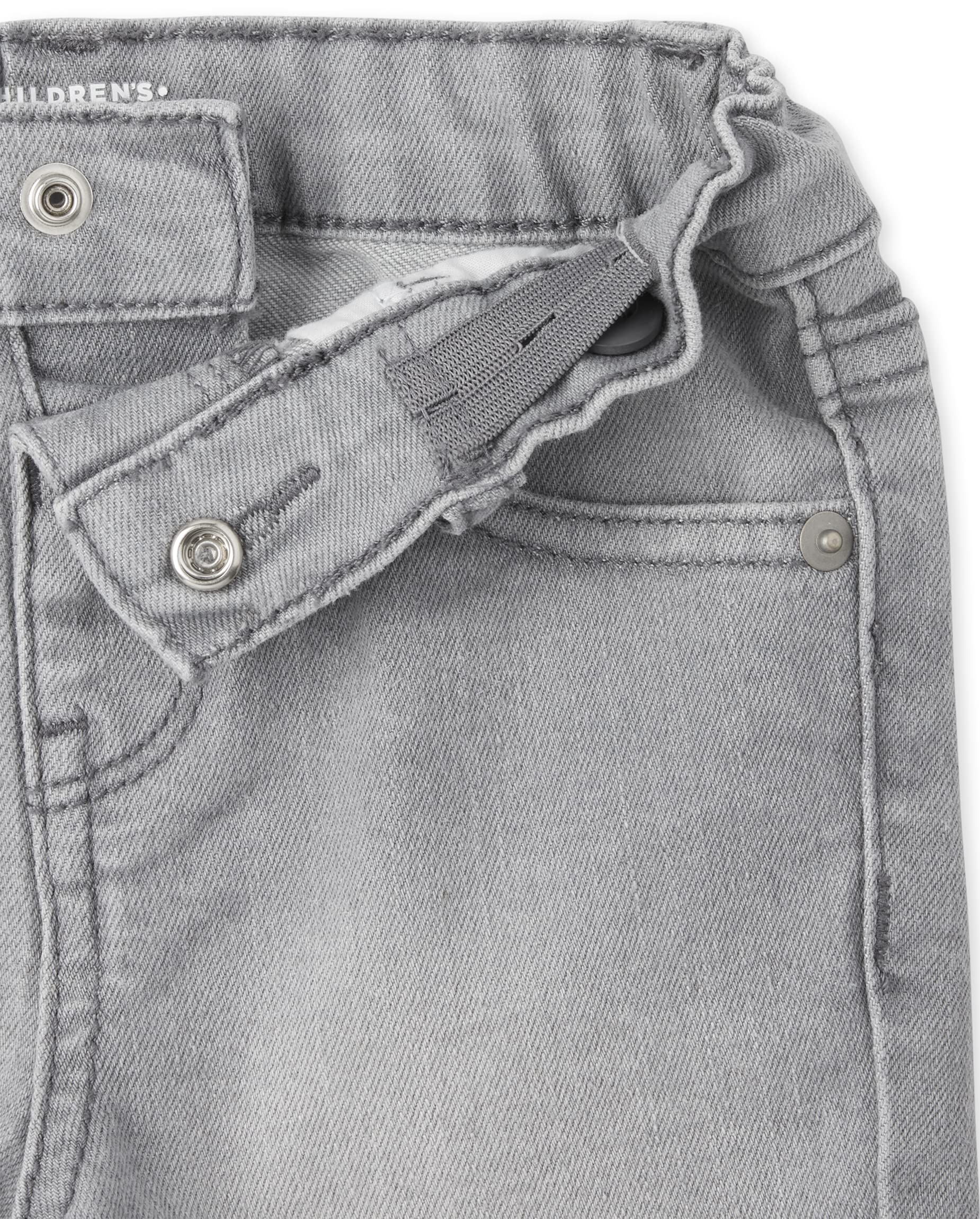 CLOSURE — EZ-fit waist features: snap closure, no-zip fly and elasticized back waist; inner adjustable waist tabs for a custom fit