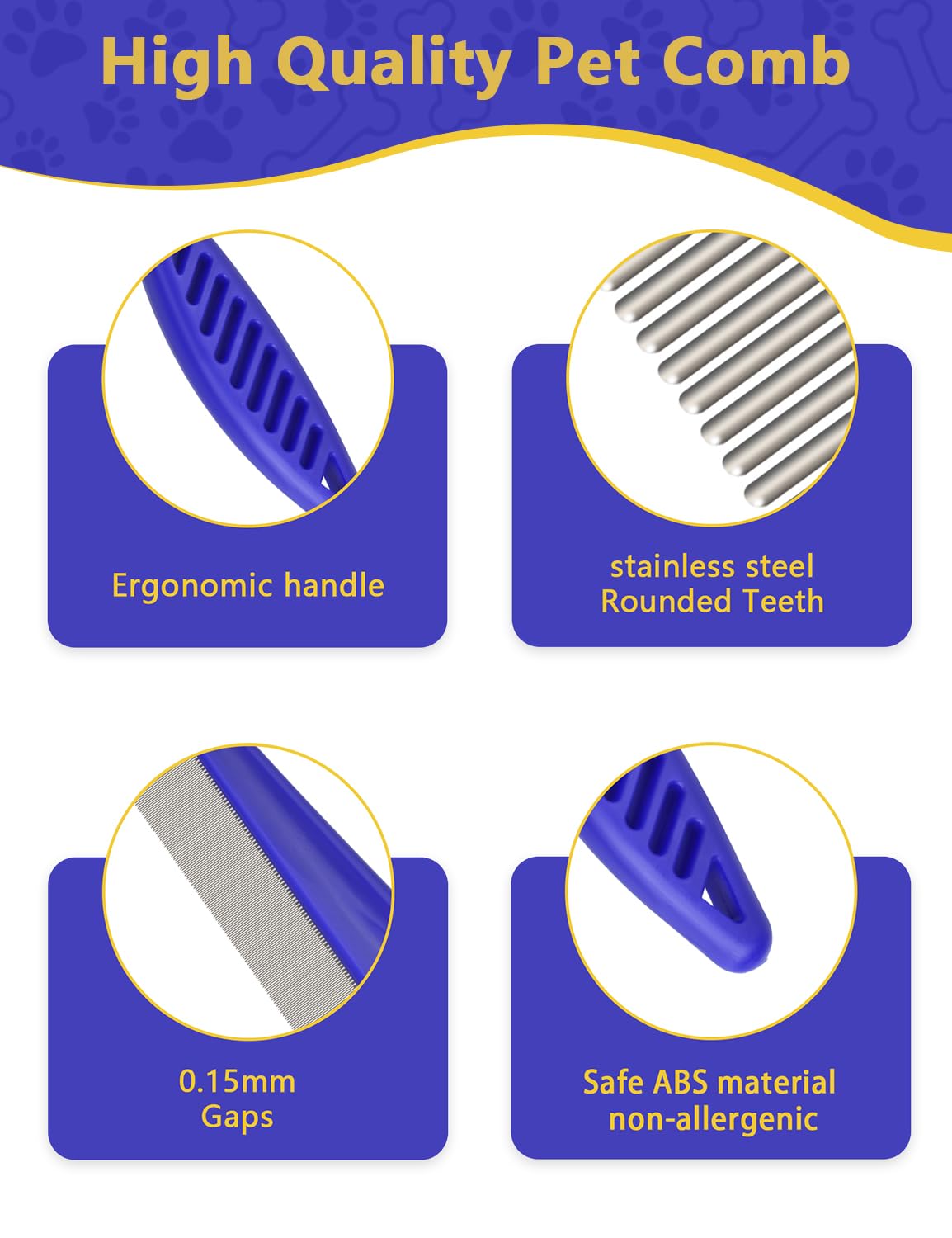 Sturdy And Durable: Pet flea comb made of high quality stainless steel teeth have durability and are not easy to rust, also equipped with ergonomic ABS handle, can let you feel comfortable grip when you use it