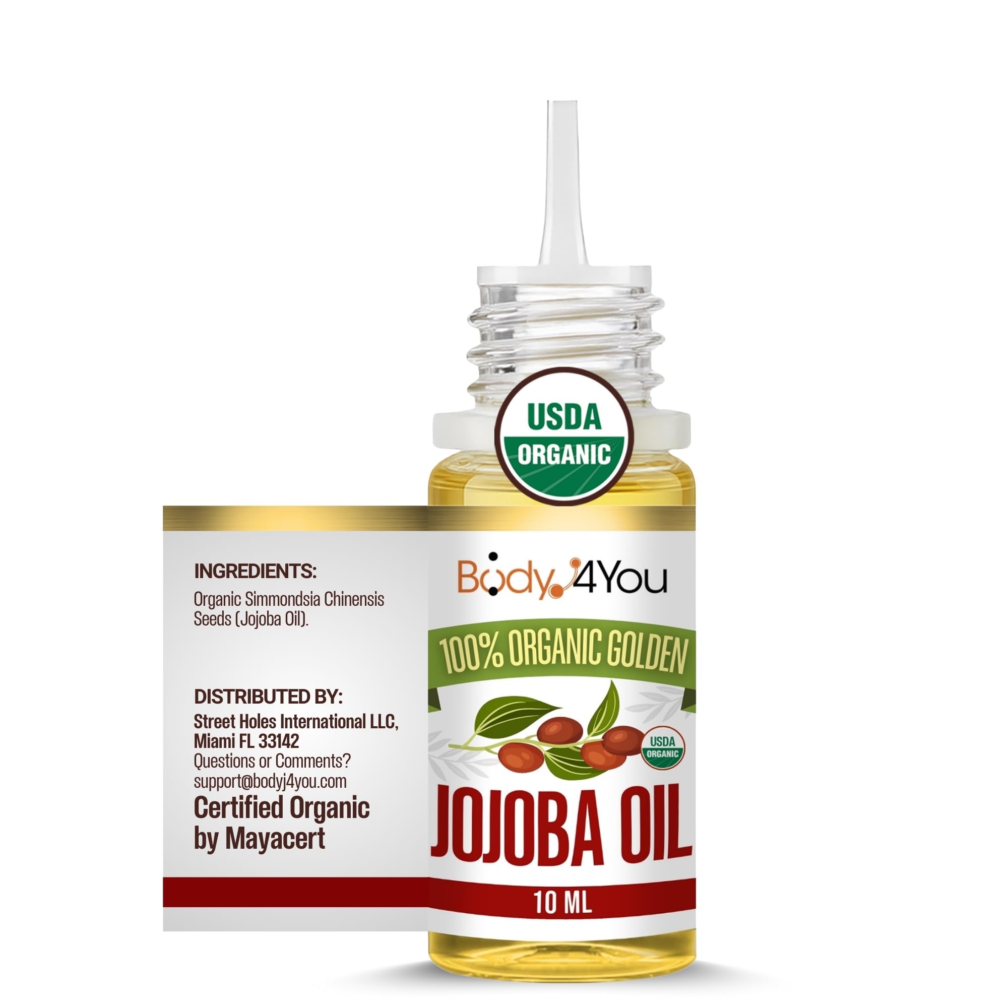 ORGANIC JOJOBA OIL FOR PIERCINGS: USDA Certified 100% Pure Cold Pressed Golden Jojoba Oil for Piercing Aftercare. 10ml (0.33 Fl Oz) Precision Dropper Bottle. Hexane Free, Vegan, Cruelty Free. Perfect Size for Daily Piercing Care, Ear Stretching Routine and Piercing Aftercare Kit