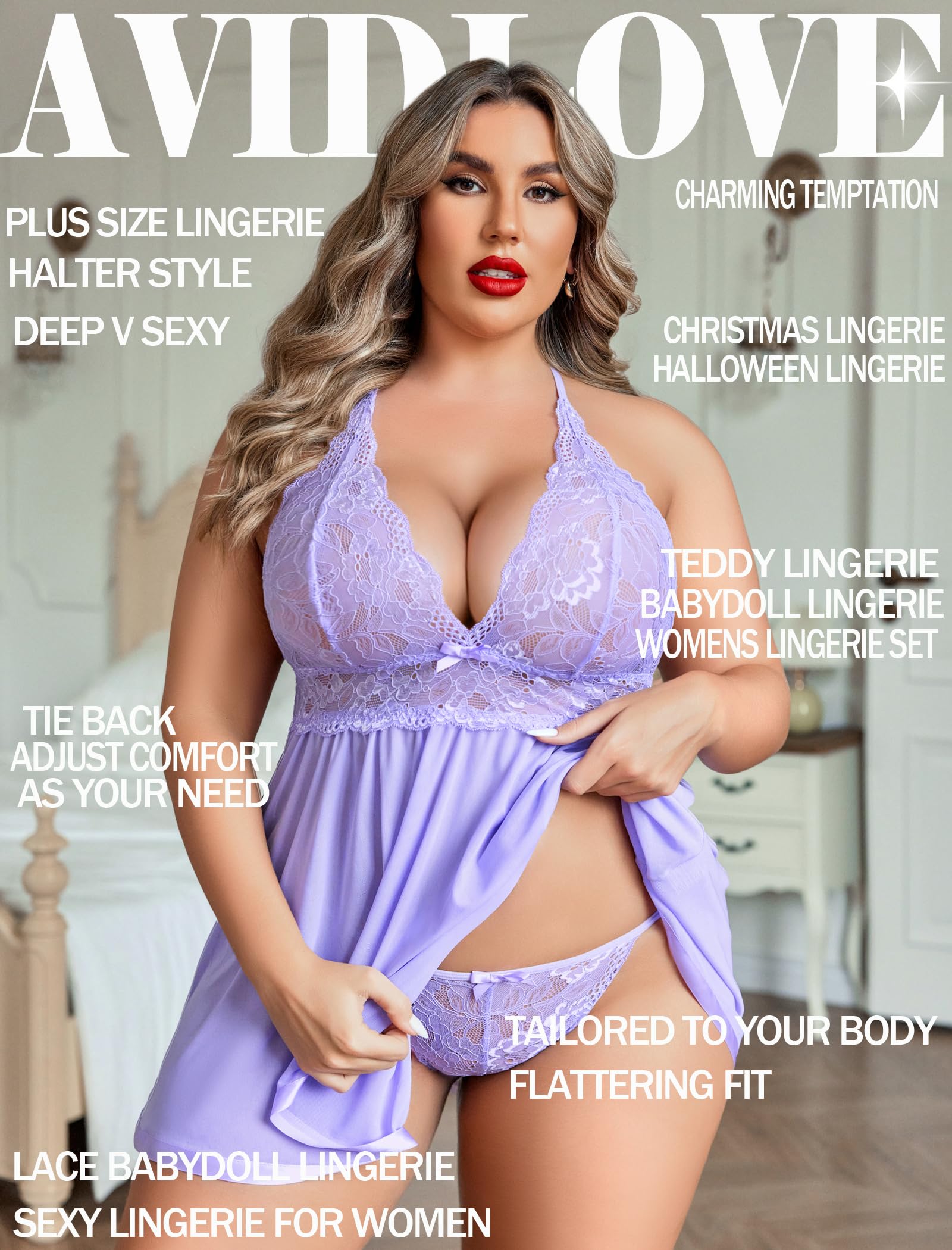 Brand: Avidlove, Material: 95% polyester and 5% spandexοΌthis plus size babydoll is made of Ultra Soft and Elastic Lace,Stretch and Breathable mesh,Satin Trim.