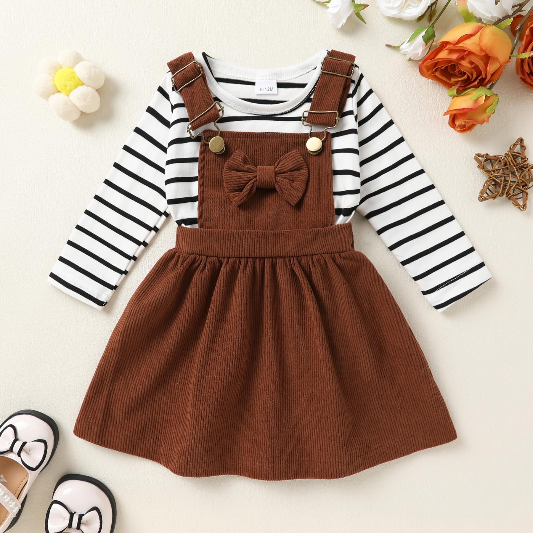 Feature: toddler girl fall outfits, girls overalls 3t, 4t girls clothes, adjustable strap dress and long sleeve stripe t-shirt, 4 lovely colors available, perfect toddler fall dresses