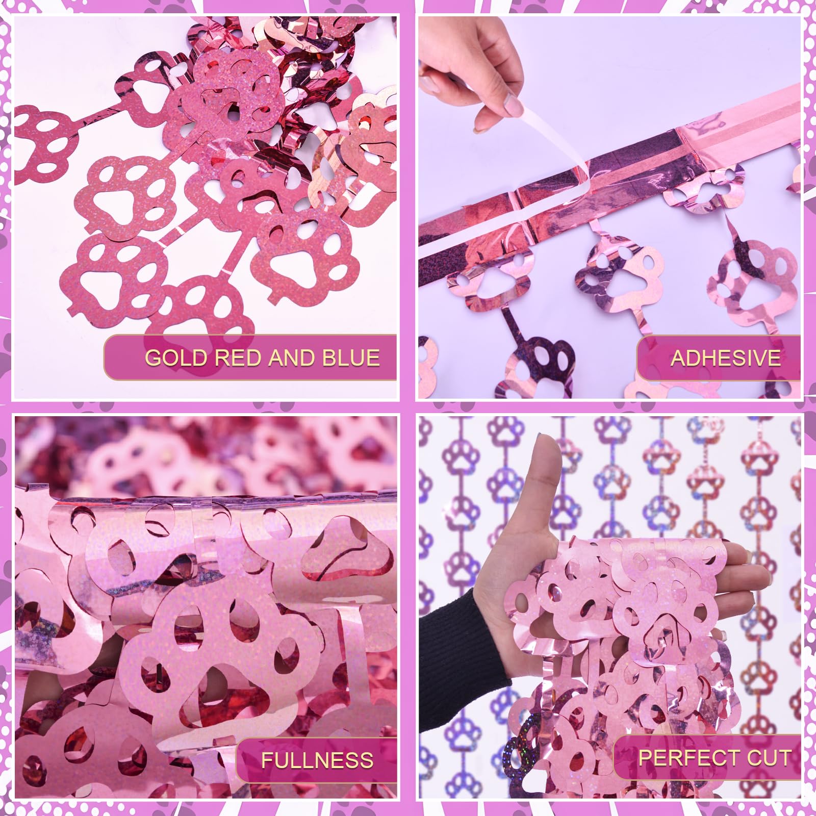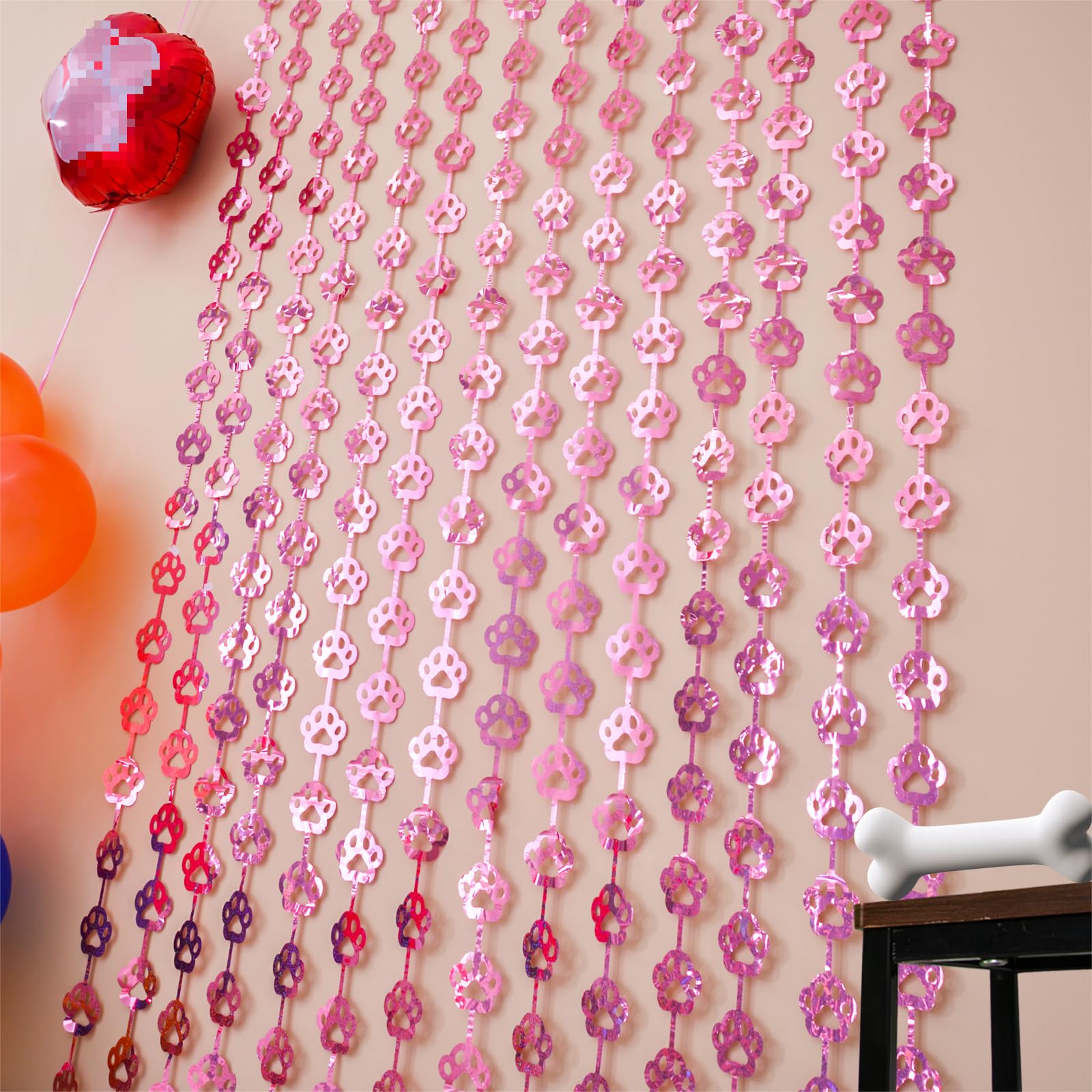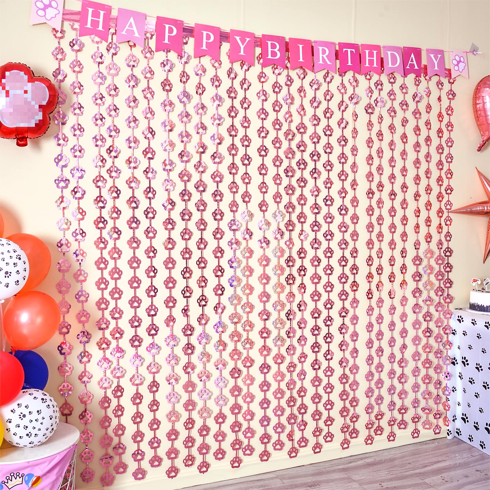 🩷 DOG BIRTHDAY PARTY SUPPLIES: Our unique pink dog paw tinsel foil fringe curtains are the perfect photo backdrop for every party decor for Pet. You will be amazed at the colorful atmosphere and view they create.