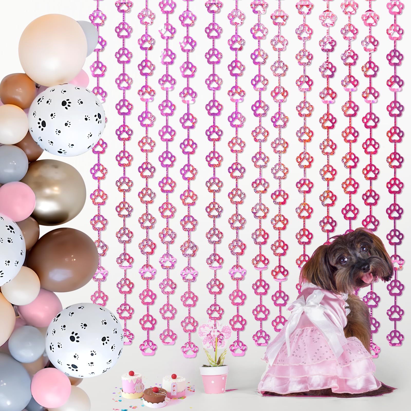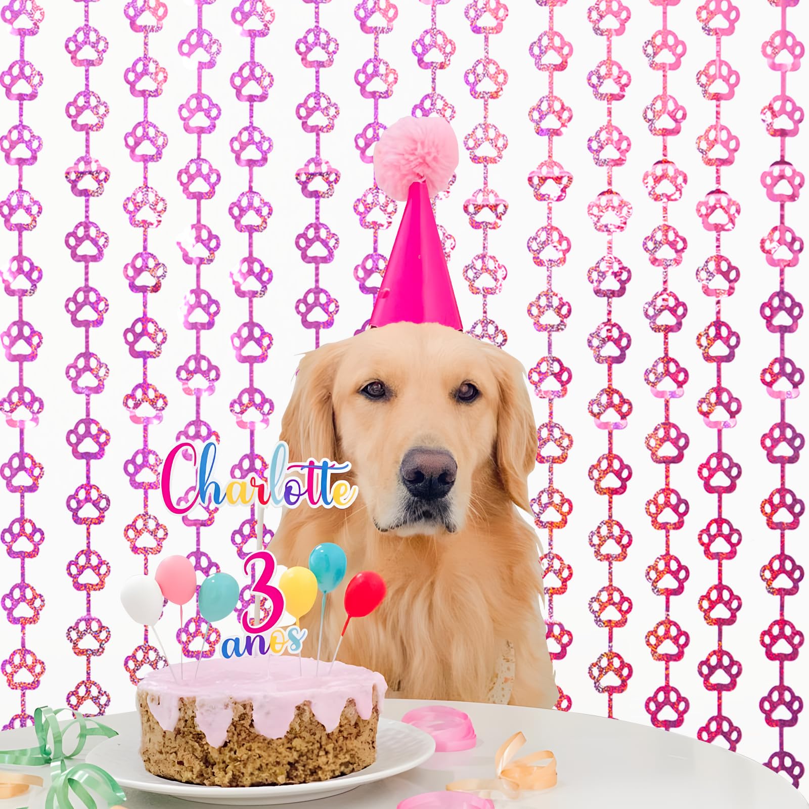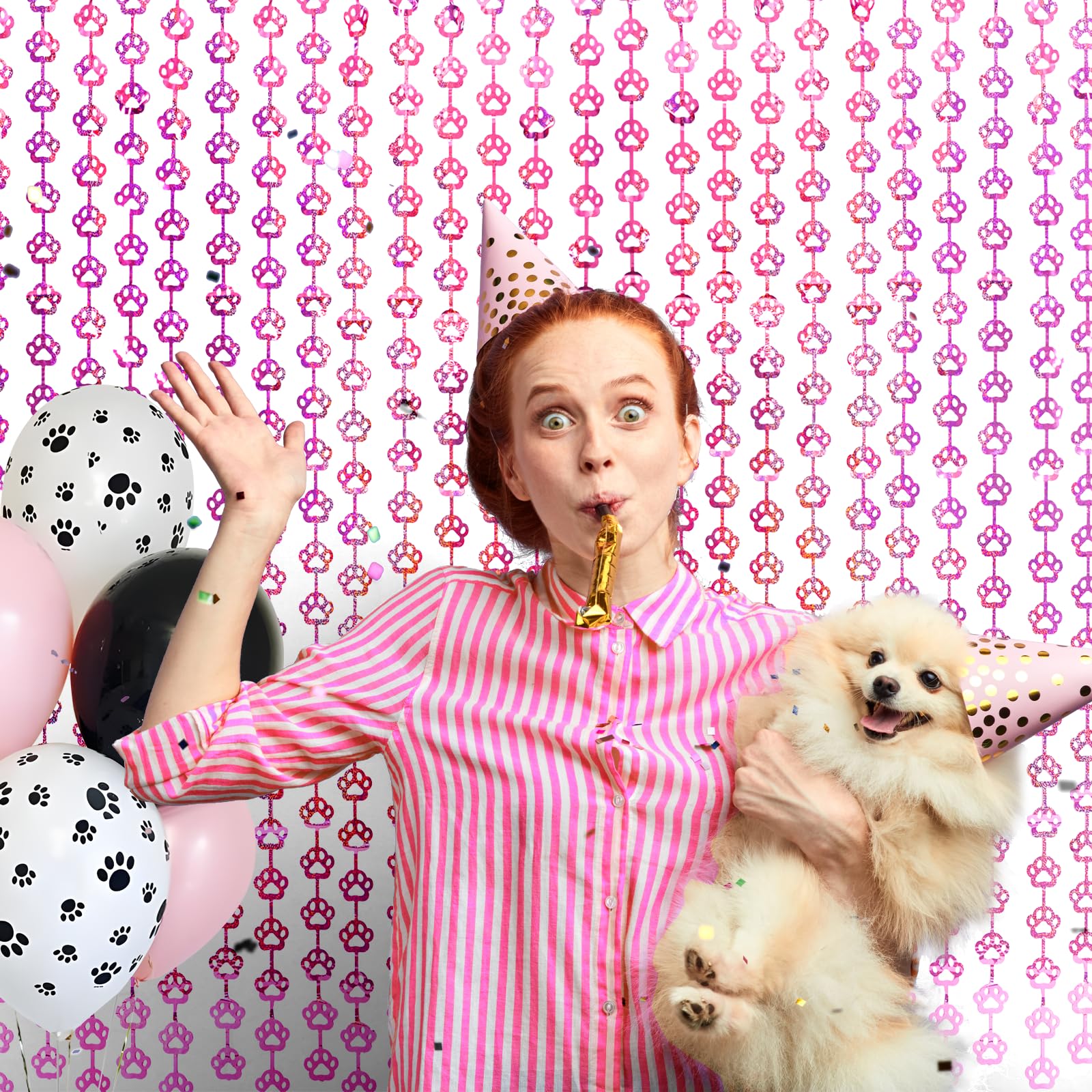 🩷 DOG BIRTHDAY PARTY SUPPLIES: Our unique pink dog paw tinsel foil fringe curtains are the perfect photo backdrop for every party decor for Pet. You will be amazed at the colorful atmosphere and view they create.