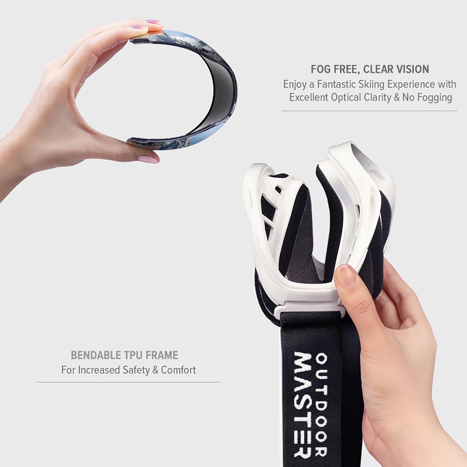 Anti-Fog Lens and Excellent Optical Clarity: Dual-layer lens technology with anti-fog coated inner lens gives you a fog-free ski experience