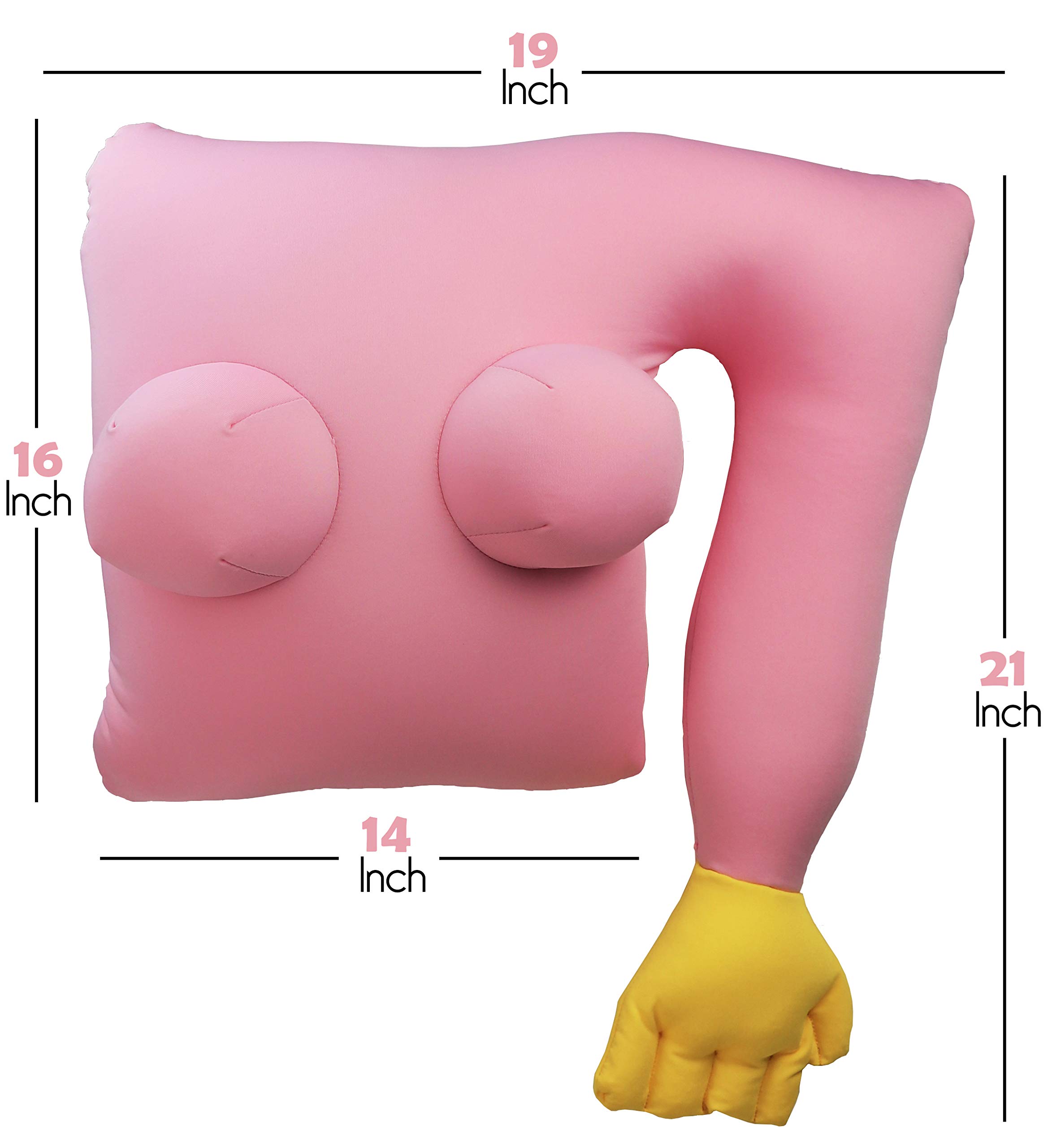 FEATURES SOFT MATERIALS with curves contoured like those of a woman, including a bosom to rest your head upon for comfort. A wonderful gift idea for men and women alike.