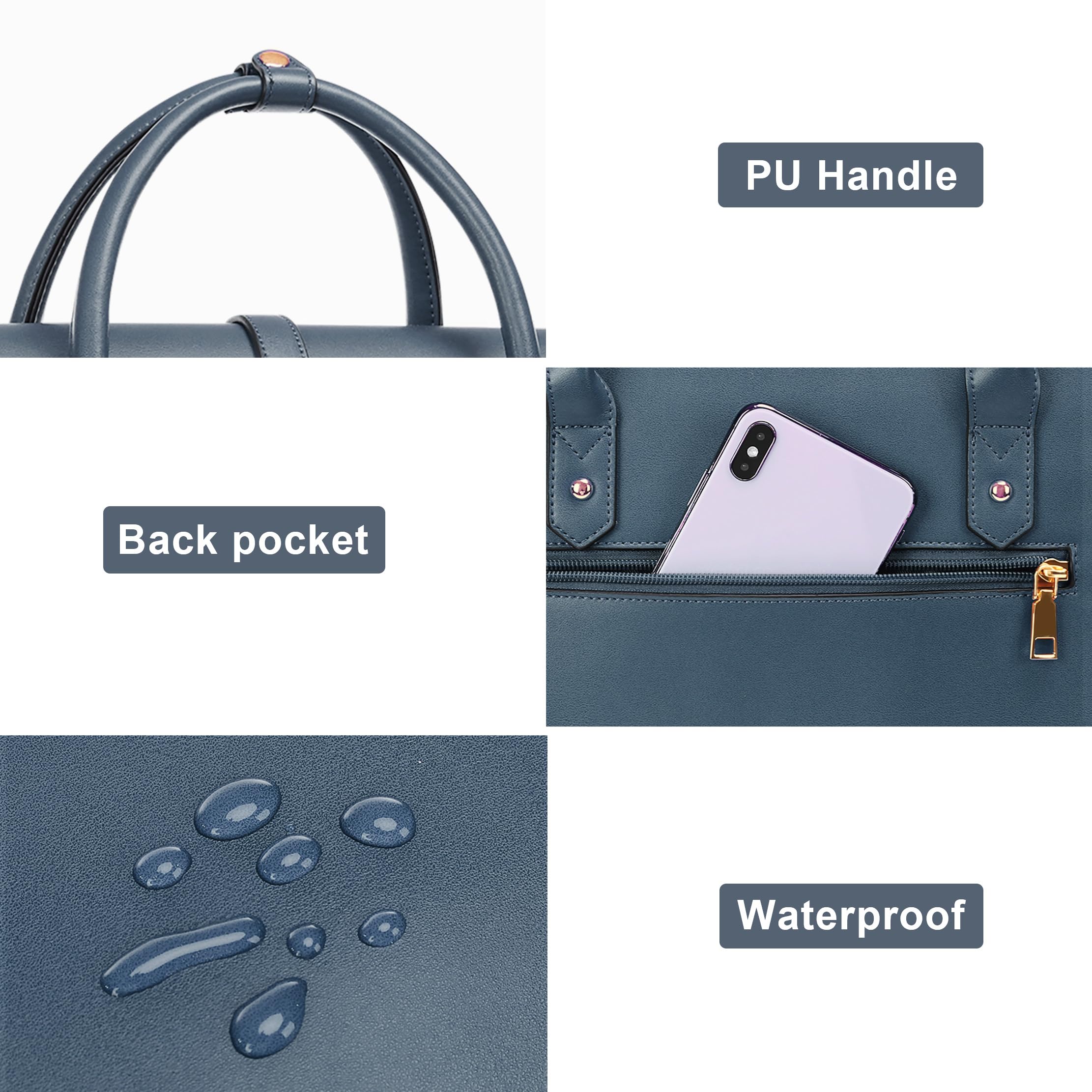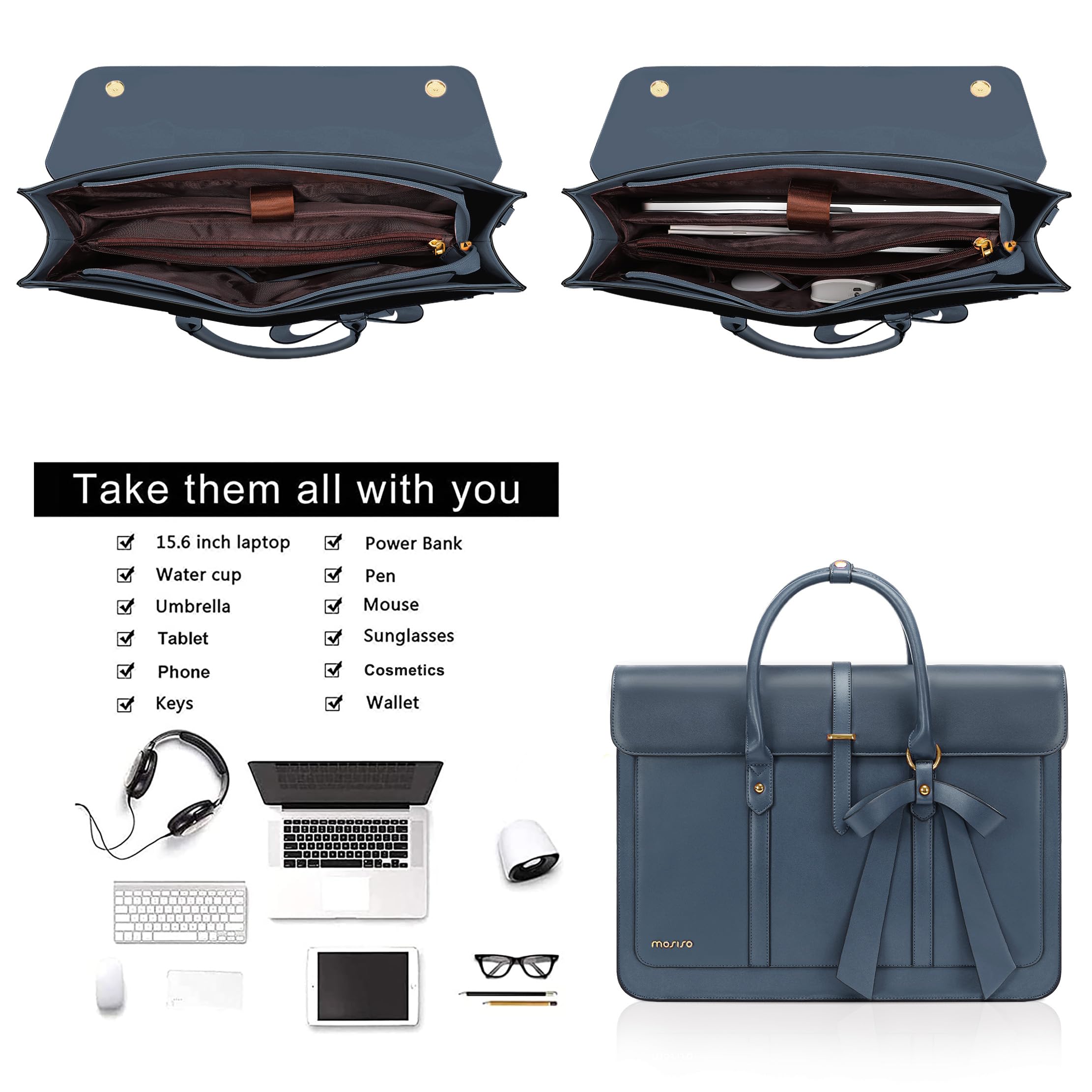 Roomy enough with 3 compartments for all your daily stuff. The computer compartment in the middle provides a thick padded foam section with a hook & loop strap closure for your laptop or tablet. Professional design to protect your laptop against accidental impacts and scratches. The other two side compartments can store your jewelry, mobile phone, keys, mouse, passports, credit cards, cash, makeups and so on.