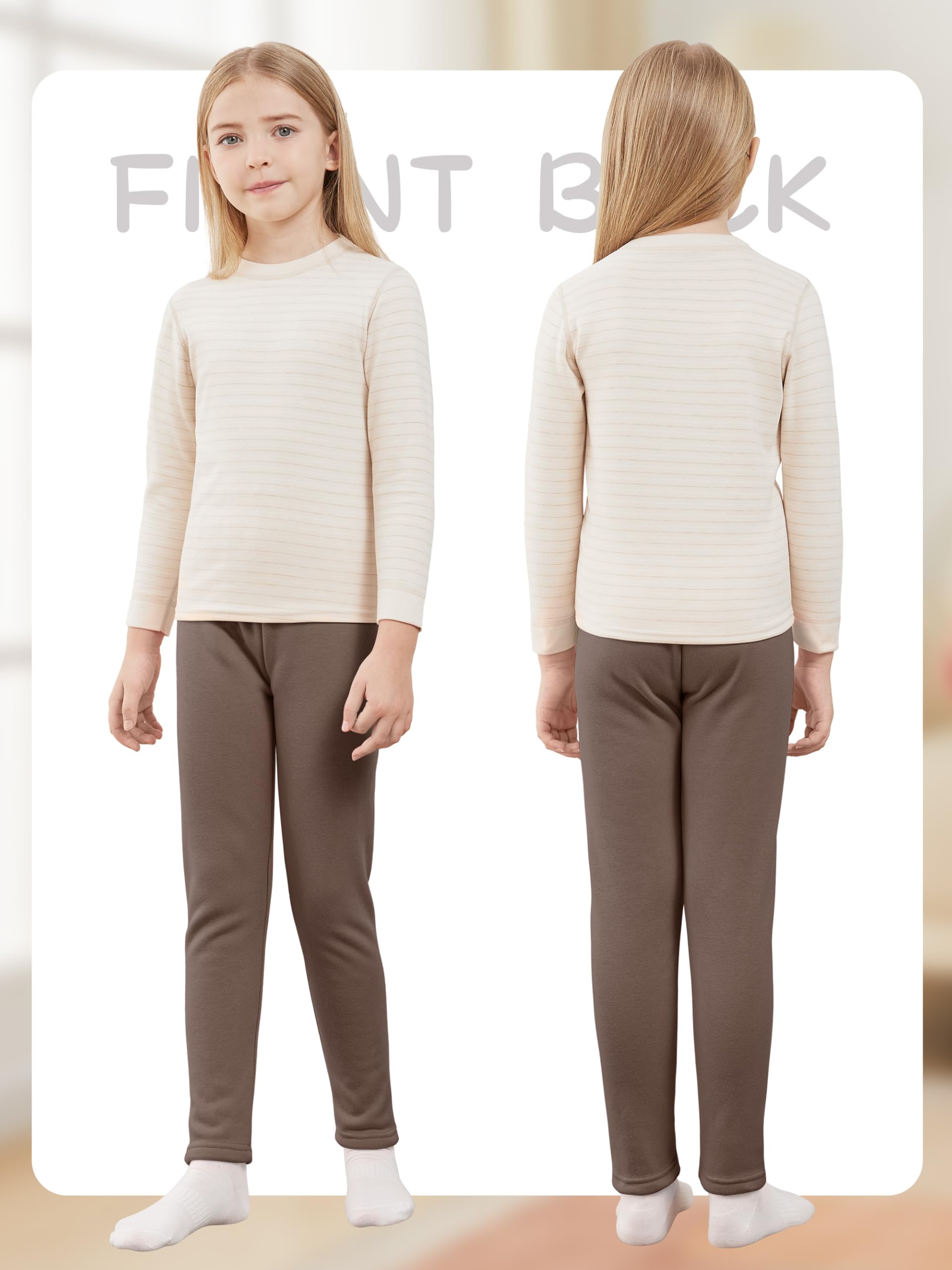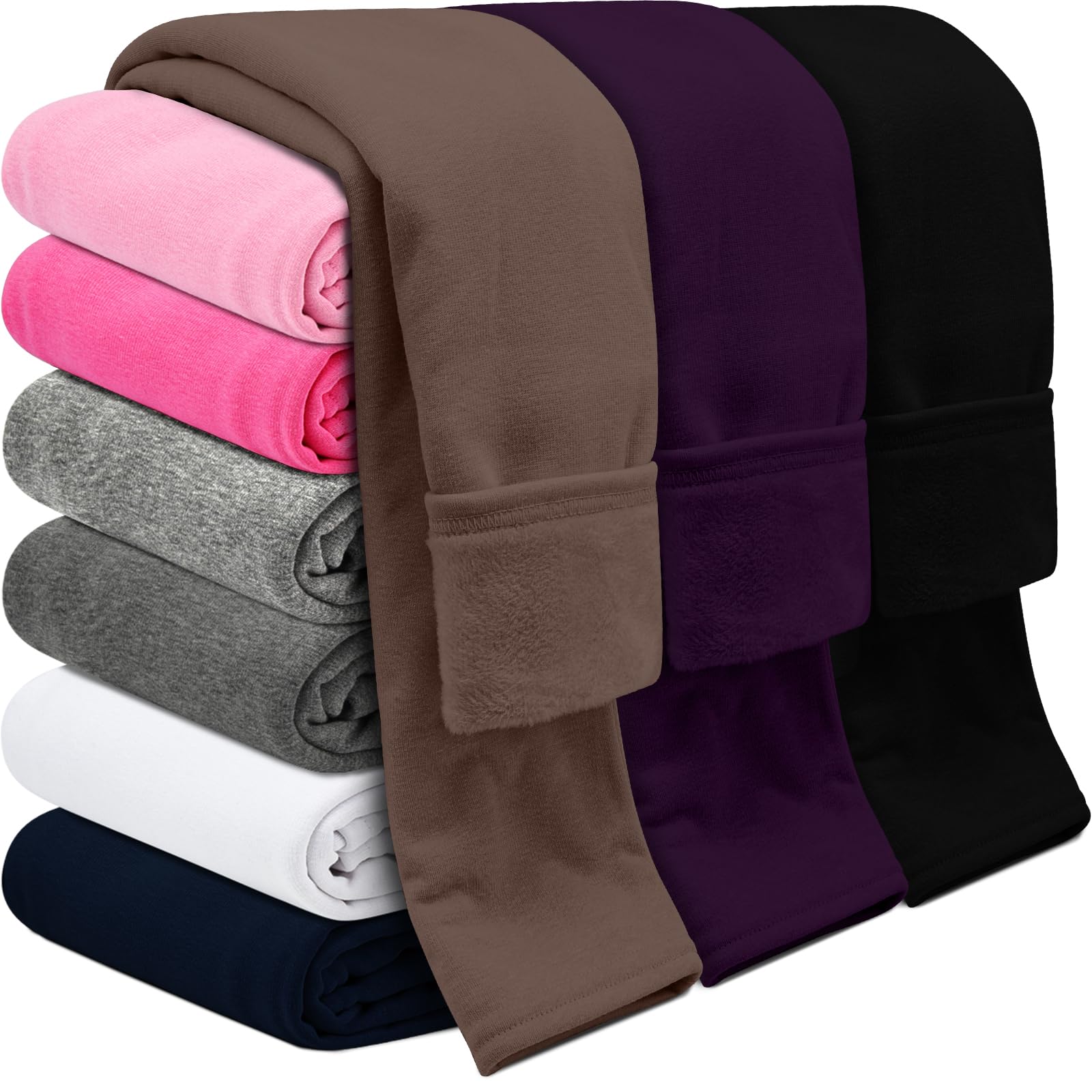 FLEECE LINED LEGGINGS: The outer layer of these warm leggings for girls is made of pure cotton and they are lined with fleece, making them elastic, soft, comfortable, and with excellent warmth.