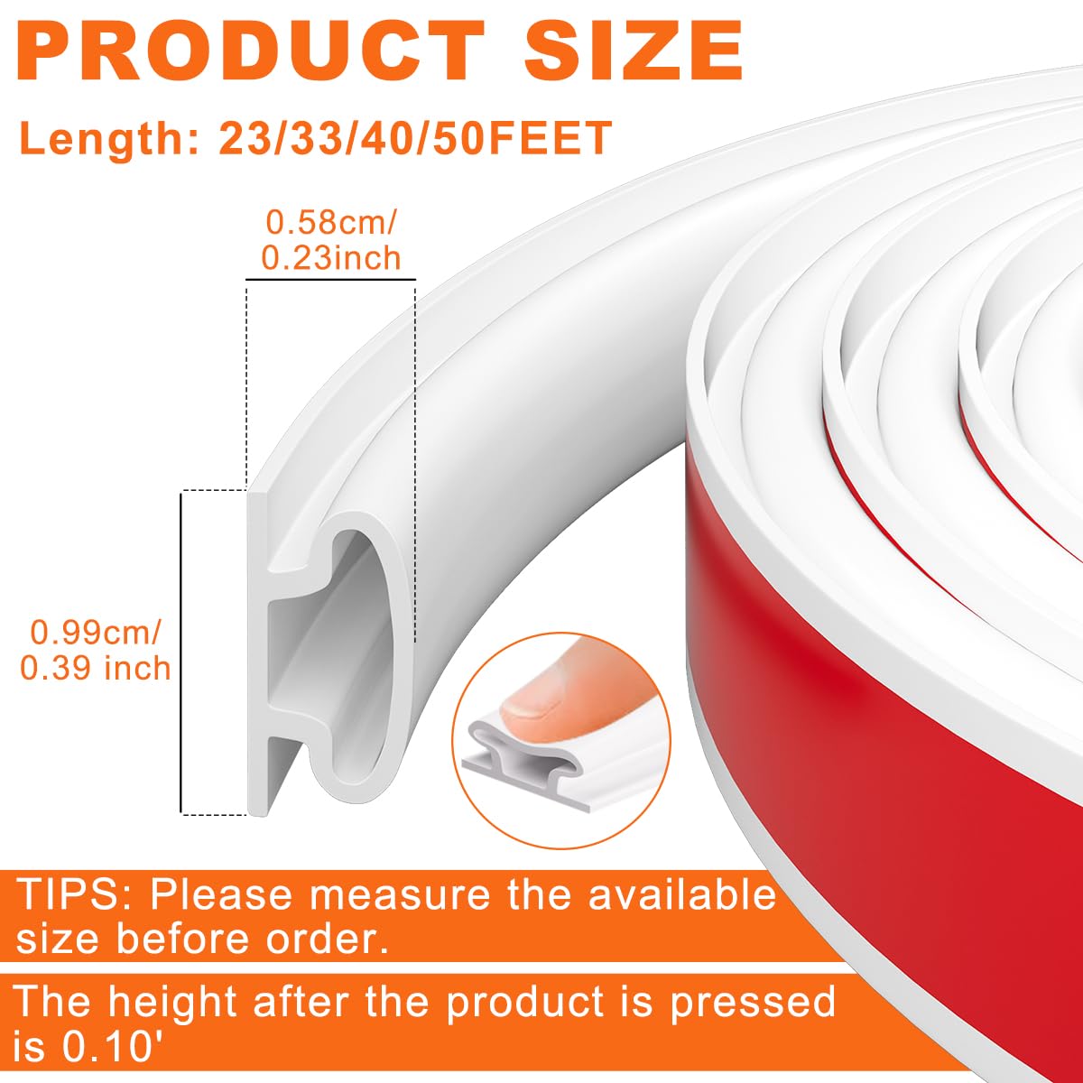 【CUSTOMIZABLE IN A VARIETY OF SIZES】This weatherstripping is easy to customize, can be cut to size with scissors, and can be easily bent into any shape. Overall length 50 feet, width: 0.35 inch; thickness: 0.23 inch; fits gaps and spacing from 0.1 to 0.22 inch.NOTE: Please measure the width of the gap before purchase