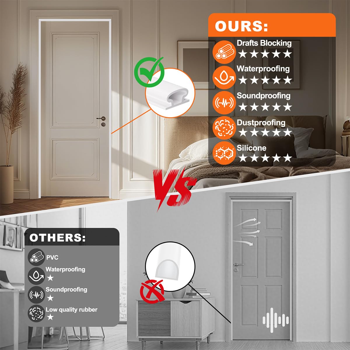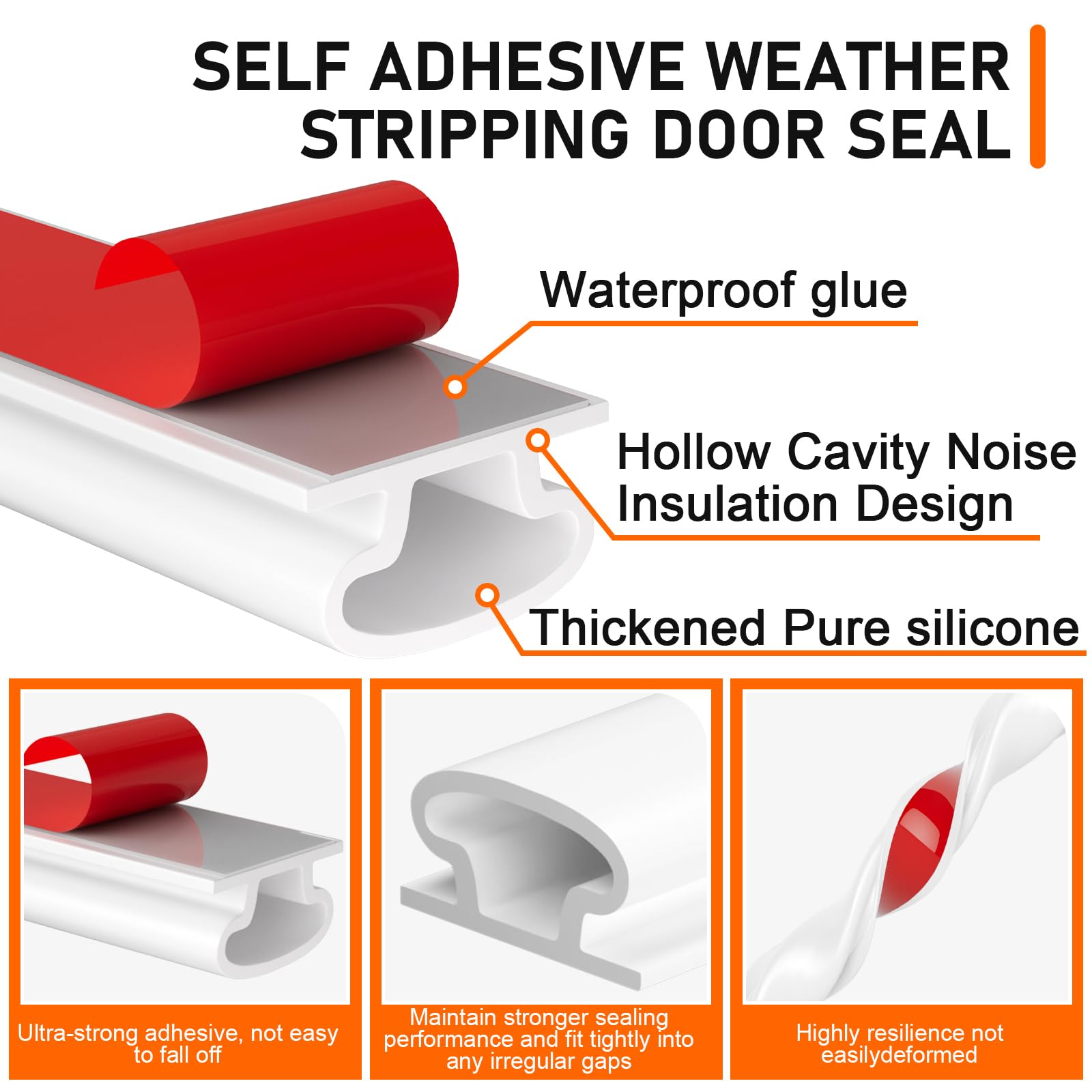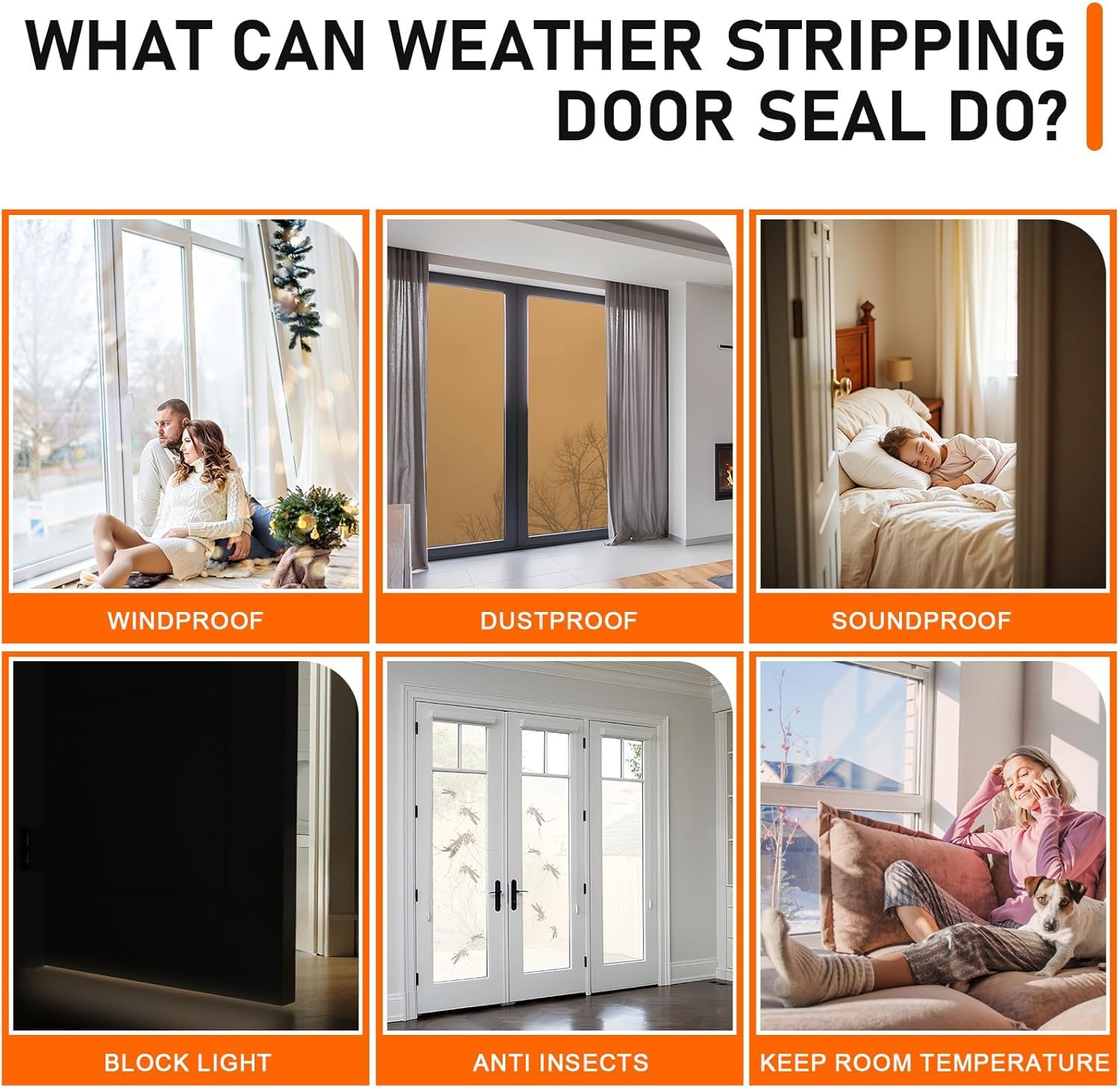 【THICKENED SILICONE MATERIAL - COMPLETELY BARRIERING AIR AND NOISE】:The weather stripping is made of thickened TPE material with good sealing and anti-deformation properties, with this weather stripping you can completely seal the gaps, keep the room warm in winter and cool in summer, Helps To Reduce Energy Consumption ,and blocking the entry of noise, light, rain, dust, wind, leaves, snow, and odor, and no reptile will sneak in.