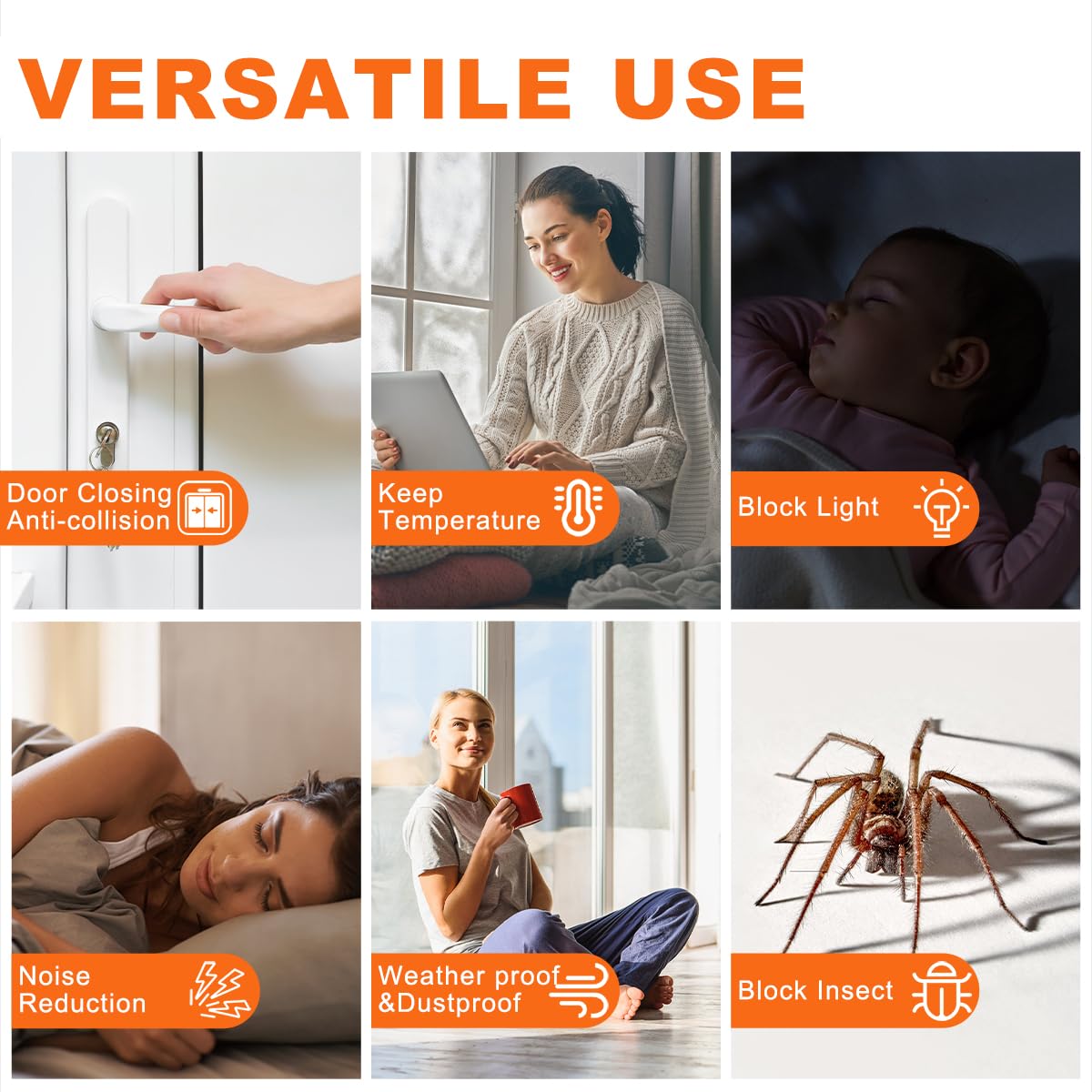 【WIDELY USED】The Door Insulation Strip is a tough, long-lasting self-adhesive tape with minimal compression that helps prevent rattles, vibrations and squeaks. It is widely used as weather stripping, gaskets or cushioning and stabilizes major appliances such as doors, windows, furniture, electrical cabinets, speakers, toys, crafts, sports equipment, vents, air conditioning, plumbing, HVAC. Also, in cars, trucks and boats.