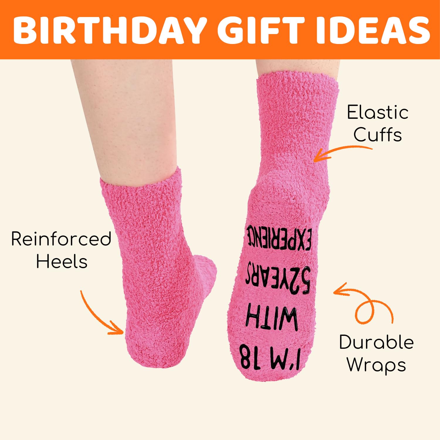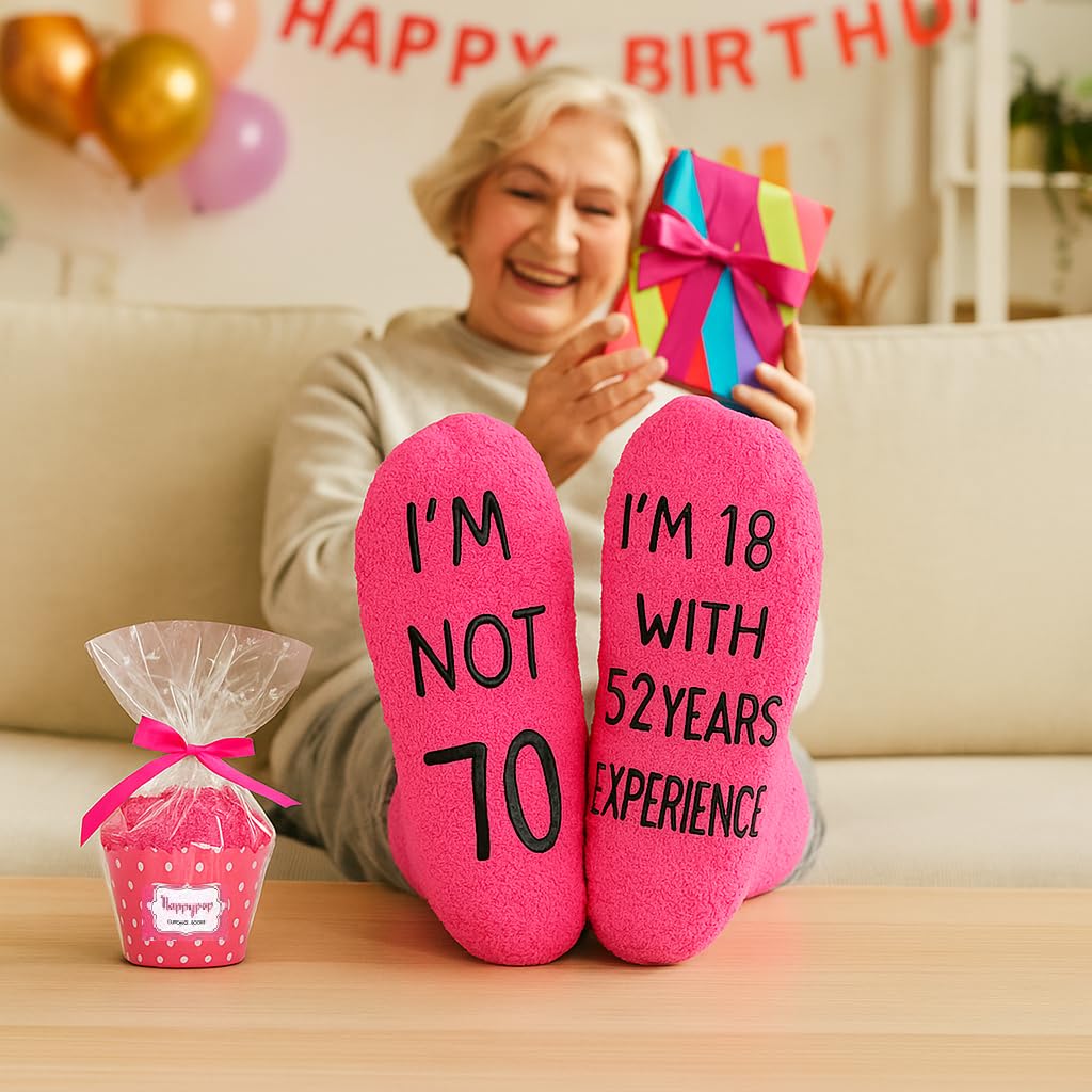70 YEAR OLD GIFTS FOR HER: Say it with socks - "I'M NOT 70, I'M 18 WITH 52 YEARS EXPERIENCE." These are suitable for any holiday gifts, such as Birthday gifts, White Elephant gifts, Christmas gifts, Anniversary gifts, Mother's Day gifts.