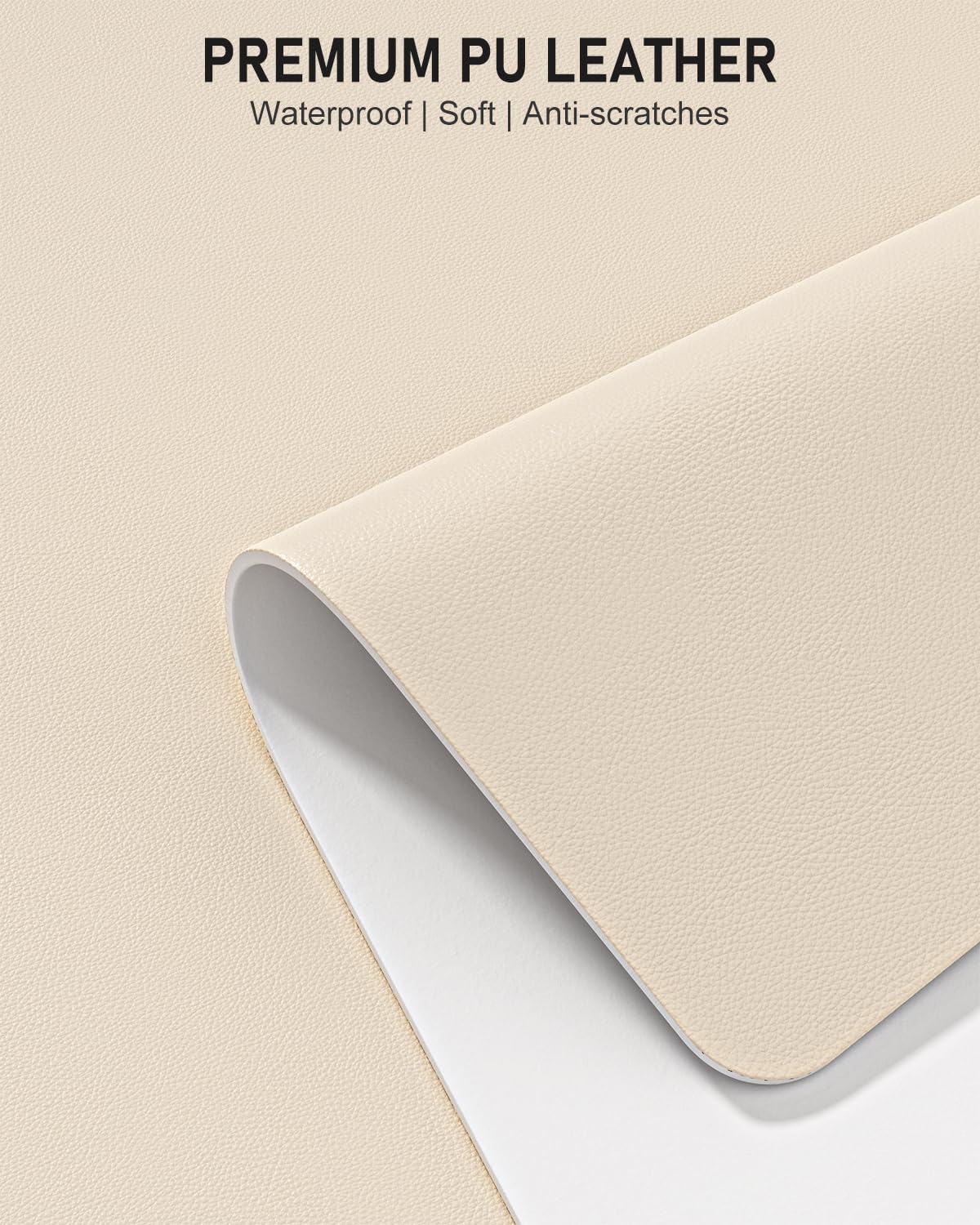 Waterproof and Easy to Clean: PU leather surface is ultra waterproof and oilproof, desk mat protects your desktop from spilled water, coffee, ink and other liquids. Easy to clean, just gently wipe with tissues or wet cloth