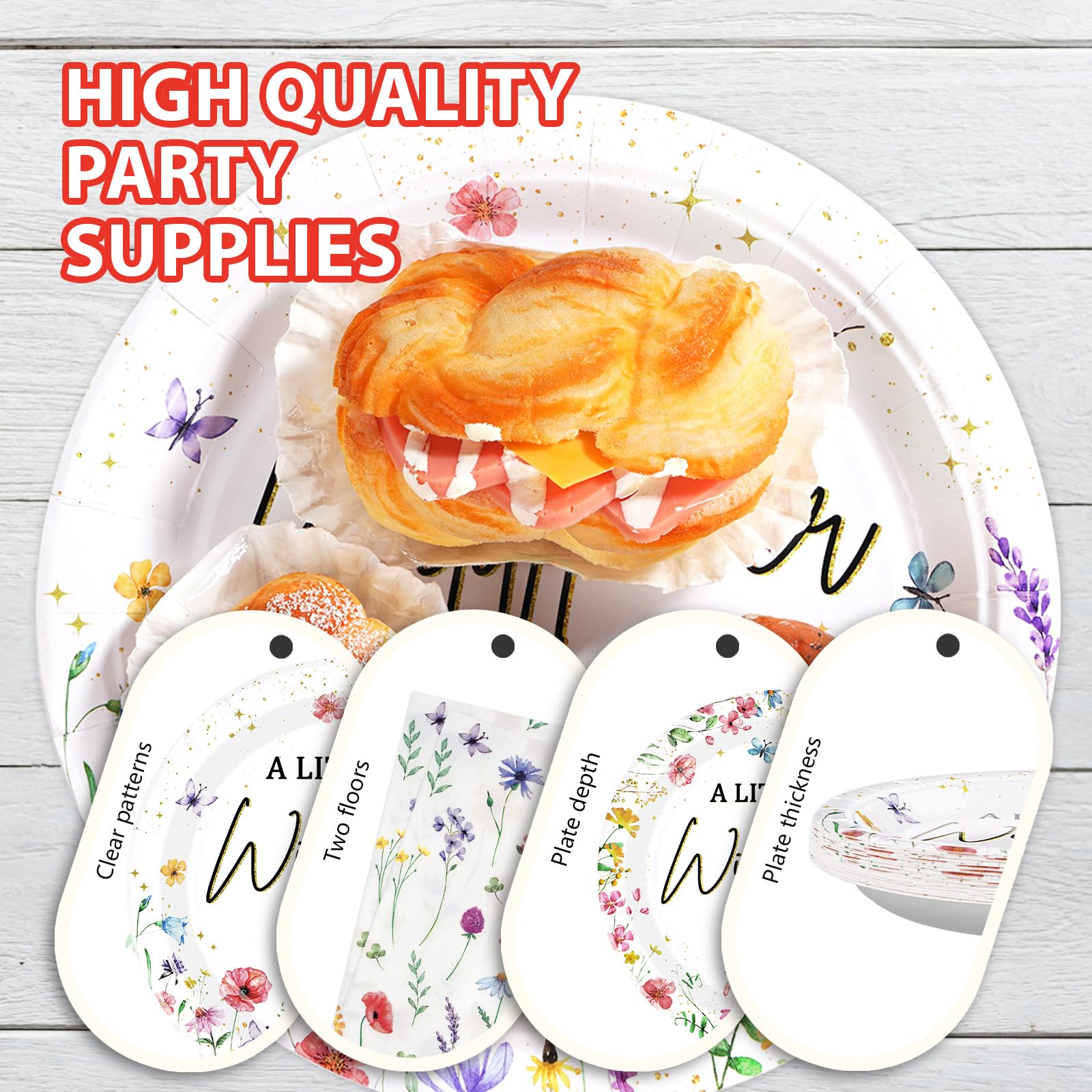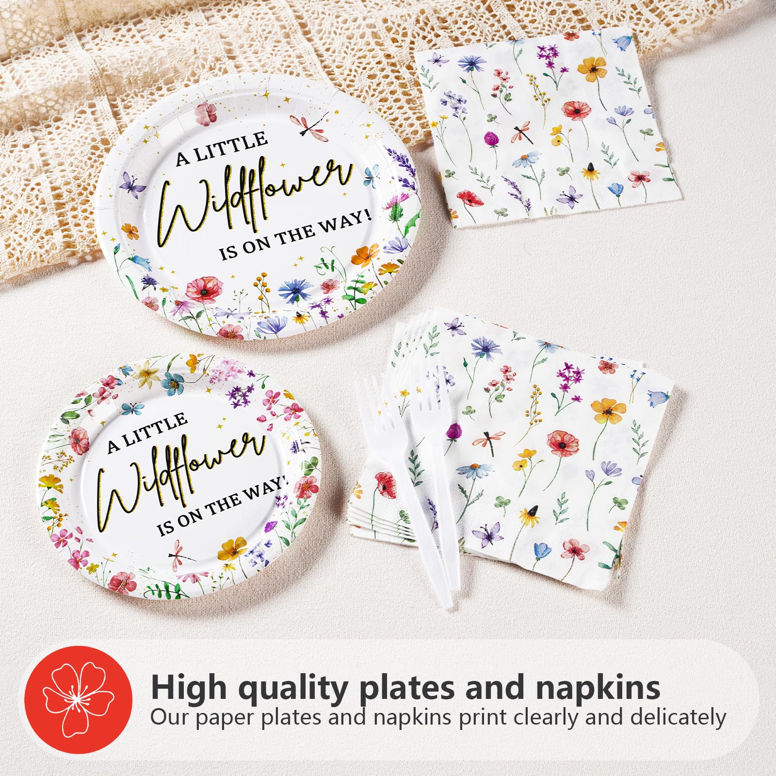 Premium Material: The wildflower baby shower disposable plates are made of heavy duty paper. Little wildflower party plates are designed to be strong enough to hold a full plate of food without folding and tearing. Napkins are soft and absorbent to ensure durability (Tips:Please do not microwave these products)