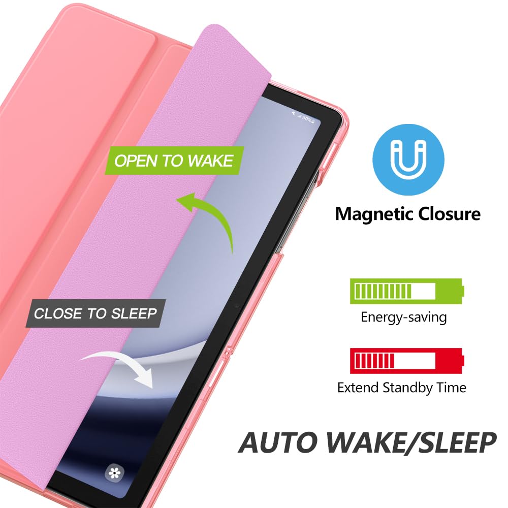 Auto Wake/Sleep: Built-in magnetic strip, automatically wakes or puts your tablet to sleep when the lid is opened and closed. this Tab A9 Plus Case Protects and extends battery life