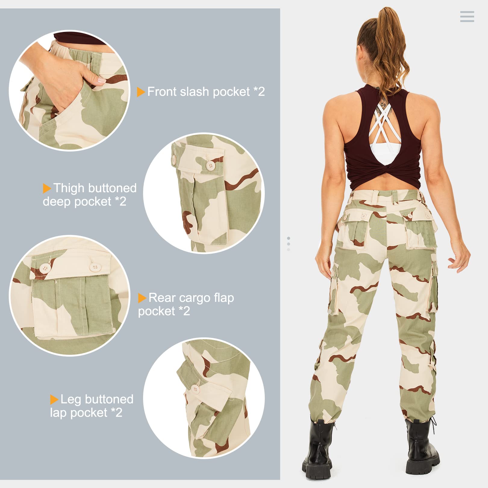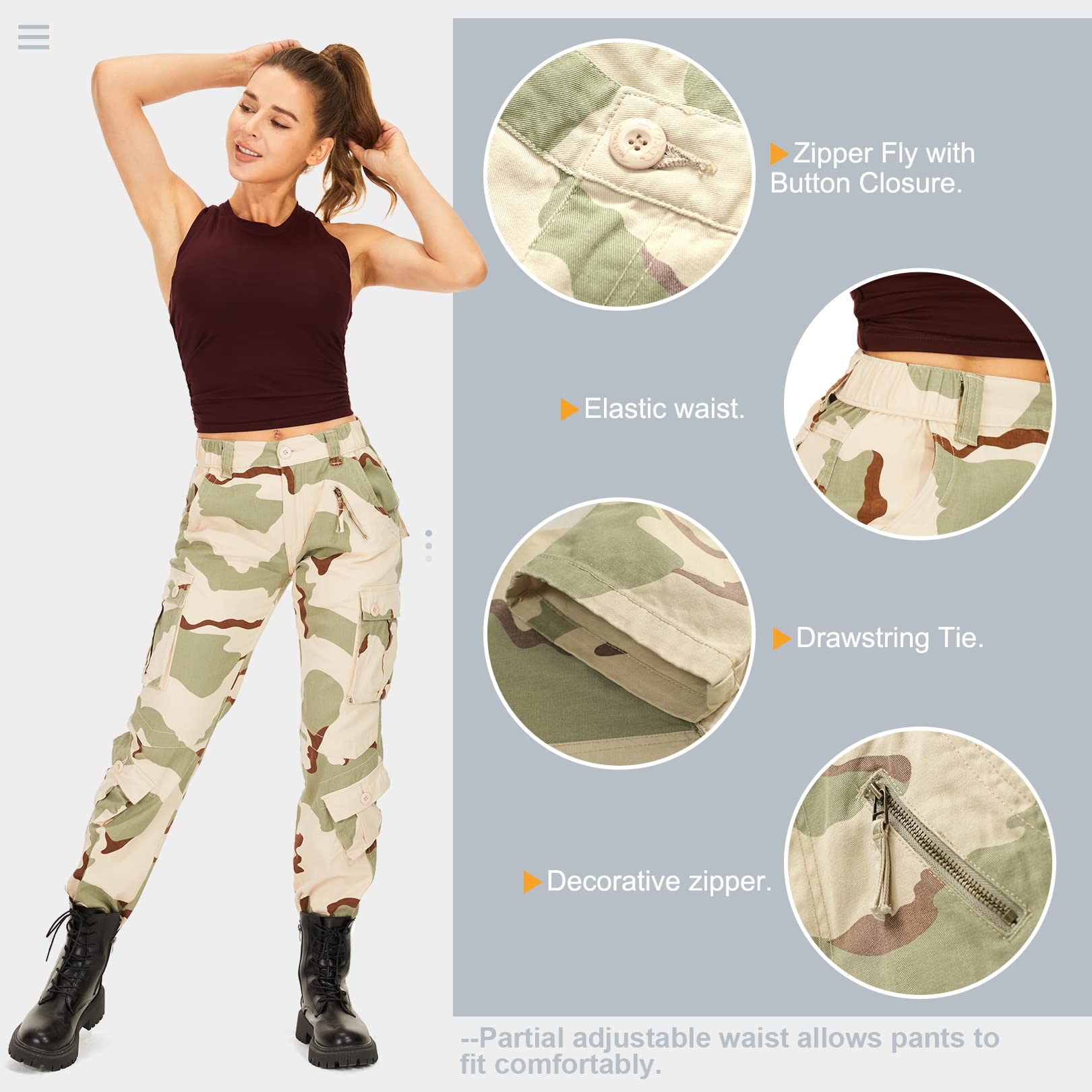 Women's Ripstop Cargo Pants: Alfiudad womens tactical pants featuring a gusseted crotch and a fitted appearance,and offers optimum flexibility and a comfortable fit to eliminate your worries about rips and tears;This camo pants for women are with easy care wrinkle resistant fabrics, roomy pockets & sturdy zippers & buttons