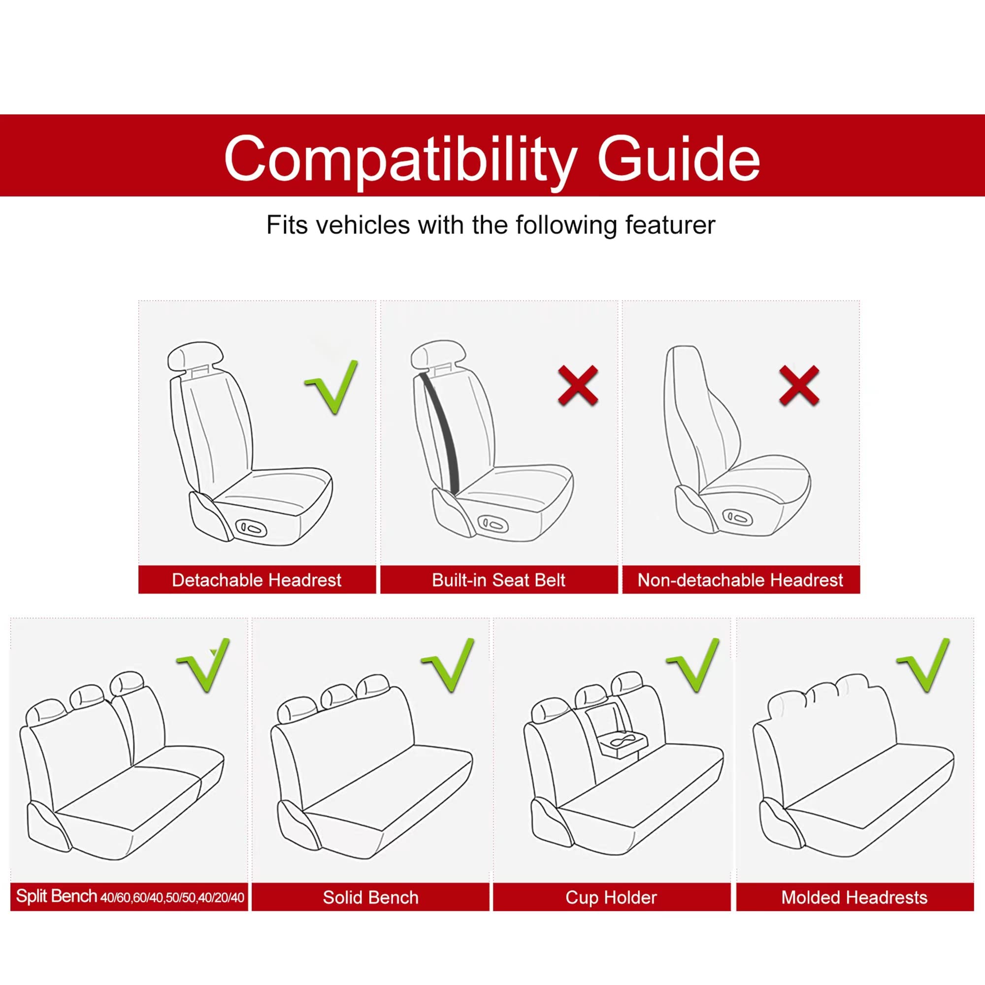 ใ๐ข๐๐ฟ ๐๐๐ฎ๐ฟ๐ฎ๐ป๐๐ฒ๐ฒใ1 Pair seat covers WITHOUT COVERED SIDES fit for driver's seats, also for left and right sides of the rear seat. If there are any questions about car seat cover compatibility, please do not hesitate to contact us