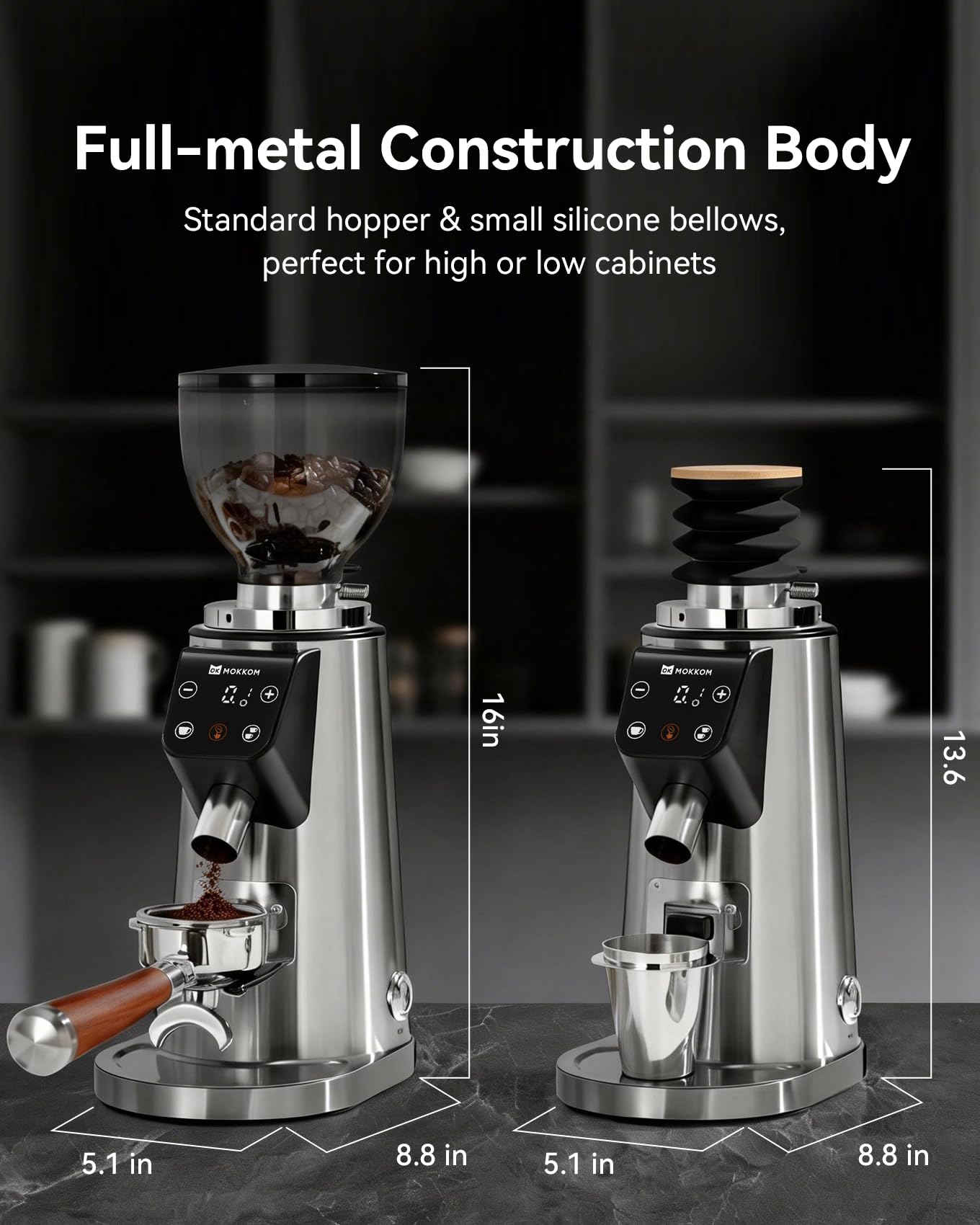 [All-Metal Stainless Steel Body Built to Last] This coffee grinder features a full all-metal Stainless Steel body, and this burr grinder delivers both sleek design and long-lasting durability. A must-have for any serious coffee lover