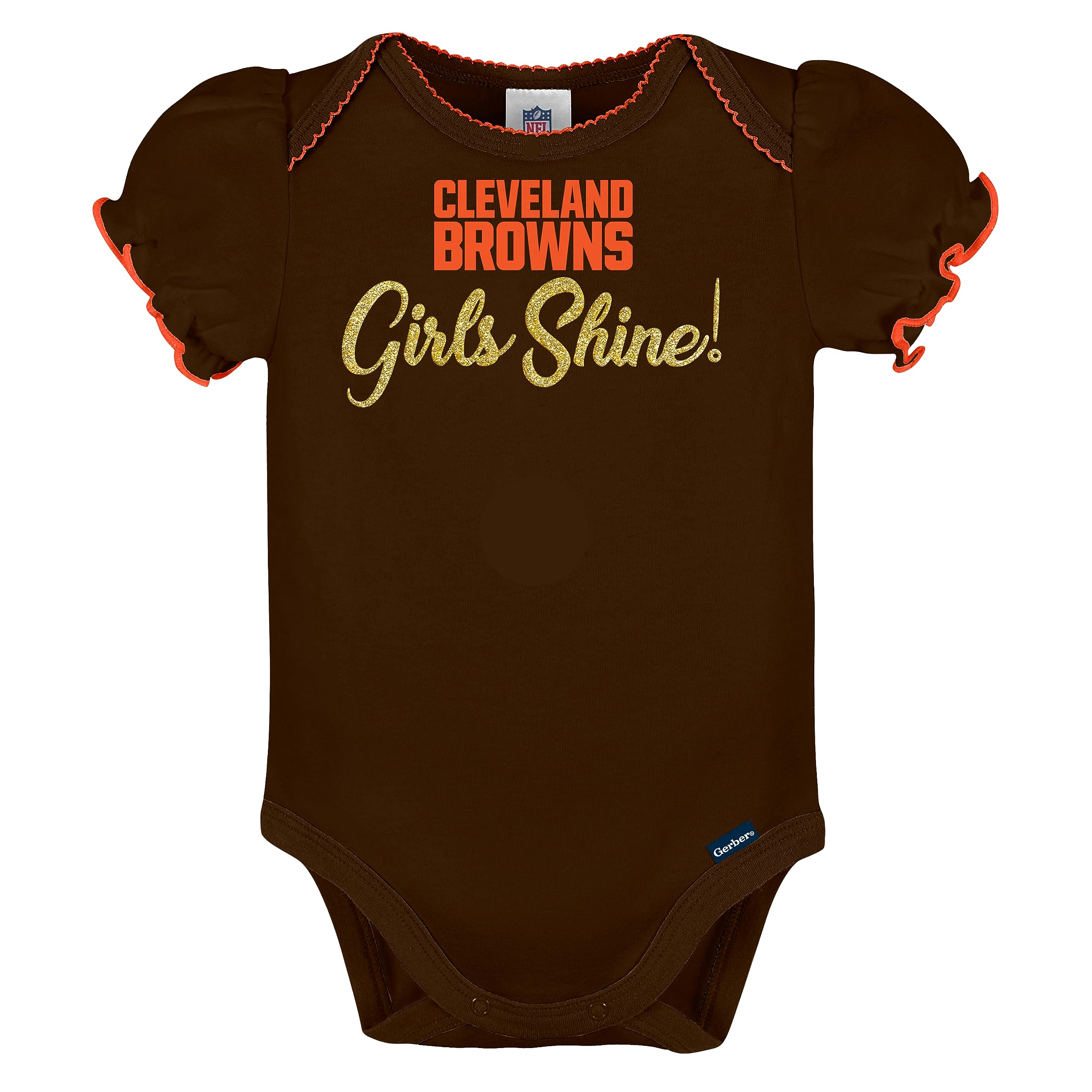 Description Itβs time for the whole family to cheer on the team! These officially licensed NFL bodysuits are the gear your little one needs for game day. Your baby will stay comfy throughout the entire game (and day!) in the cotton/poly interlock of these NFL baby bodysuits. The bodysuits feature expandable lap shoulder necklines to keep changes comfortable and quick. The bodysuits feature a variety of designs and patterns that show off babyβs team pride. The bottom snaps are positioned for convenient diaper changes, so taking breaks from the game donβt last longer than they need to. These baby girlsβ bodysuits are a great choice for warm or cool game days, as they may be layered over or worn all on their own. These bodysuits are machine washable for your convenience. Show your team spirit by dressing the whole family for the upcoming season!