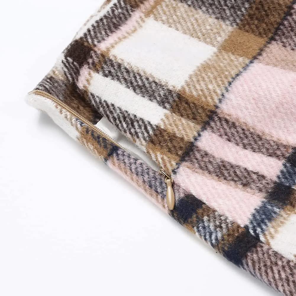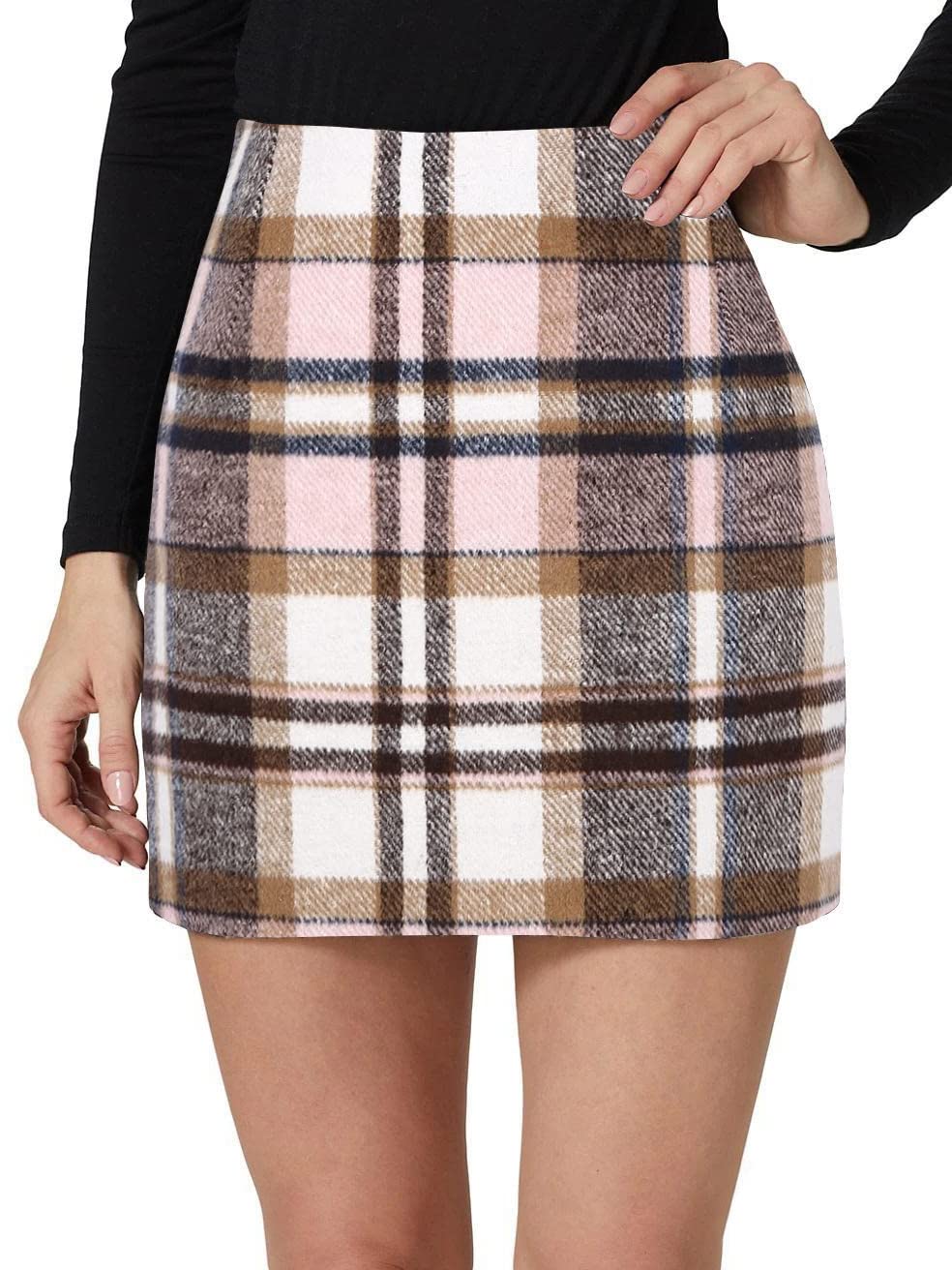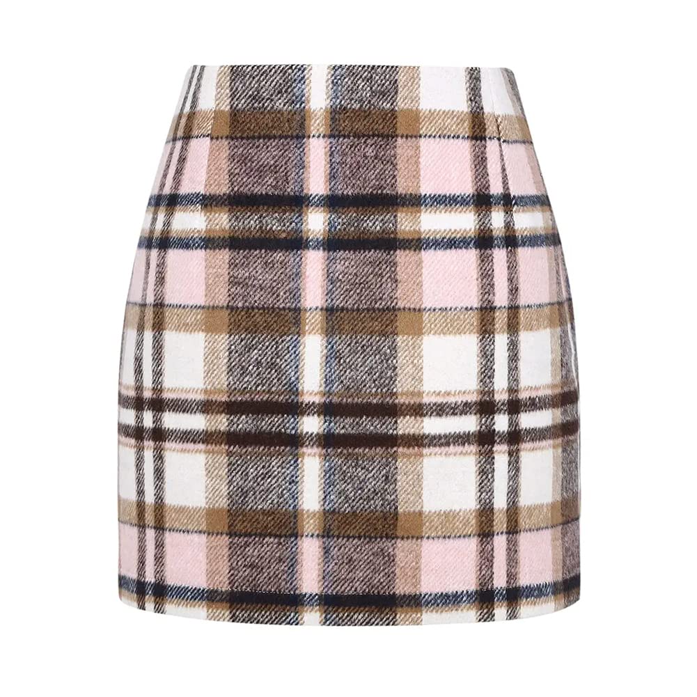 Women's plaid skirts 2025 fall winter wool high waist bodycon pencil mini skirts for ladies/teens/juniors.