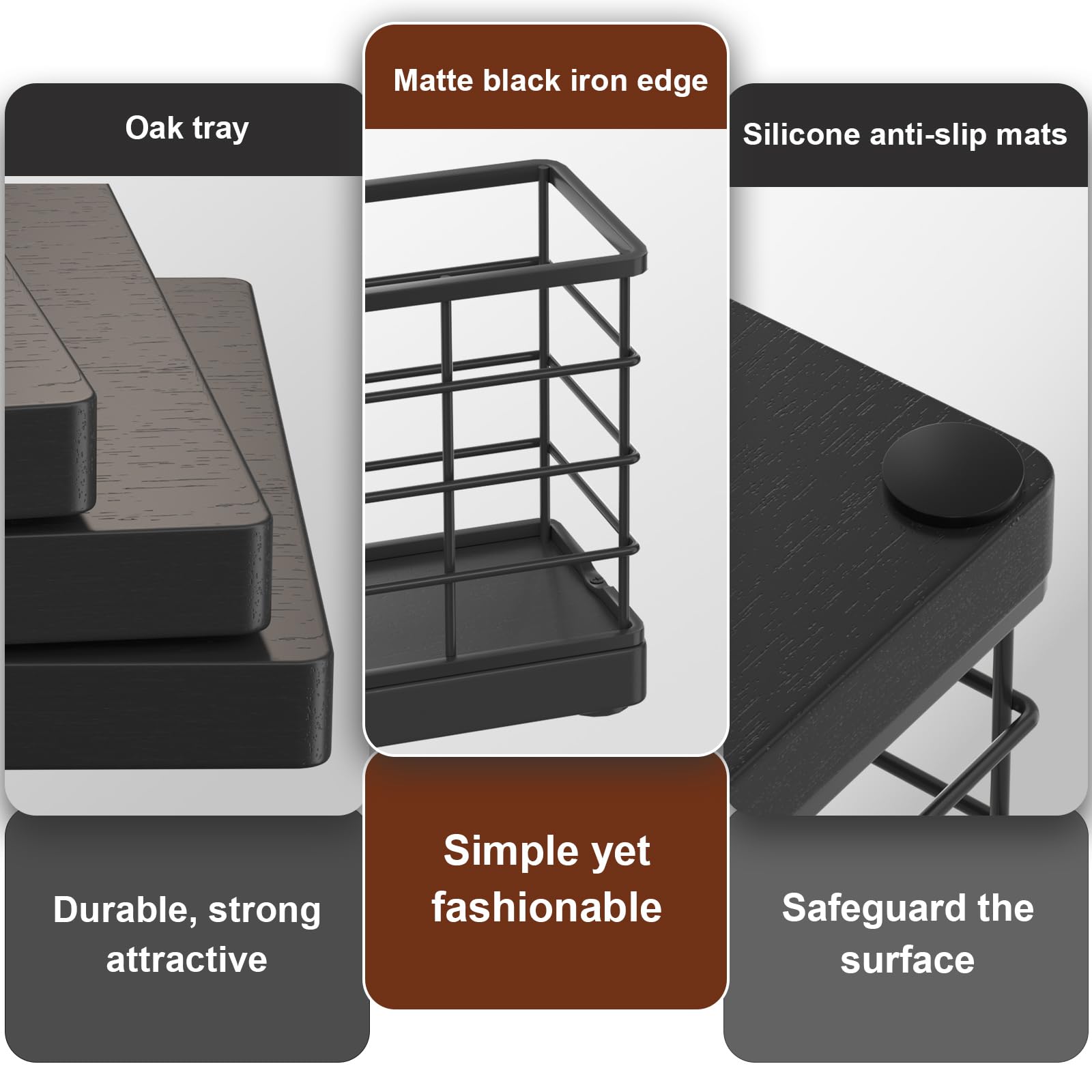Cost-effective: No assembly required, easy to clean. The tray crafted from iron and oak is simple and attractive. The solid bottom ensures items won't fall. With silicone non-slip pads, it provides both anti-slip functionality and better protection for surfaces