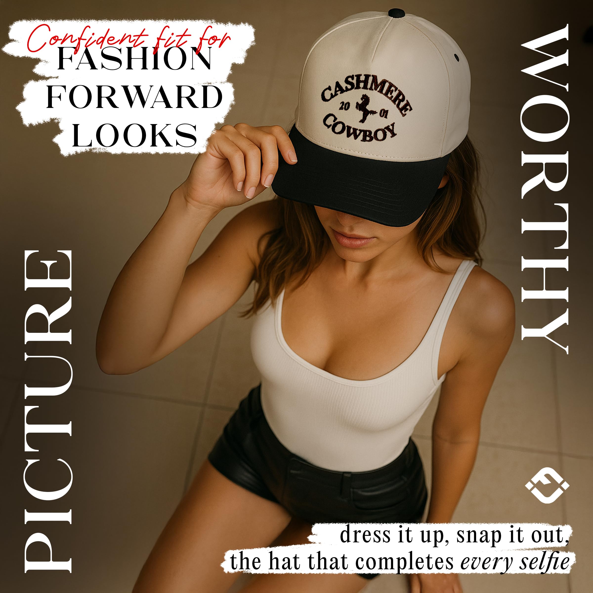 GREAT QUALITY: These two-tone retro baseball caps are 35% cotton and 65% polyester, ensuring a soft, comfortable fit, while also providing durability and breathability. This 5 panel structured hat boast high-quality, detailed embroidery designs, adding a touch of elegance and sophistication to any occasion. Despite their structured design, these hats offer a lightweight feel that contributes to their comfort and suitability for extended wear. Hand wash only.