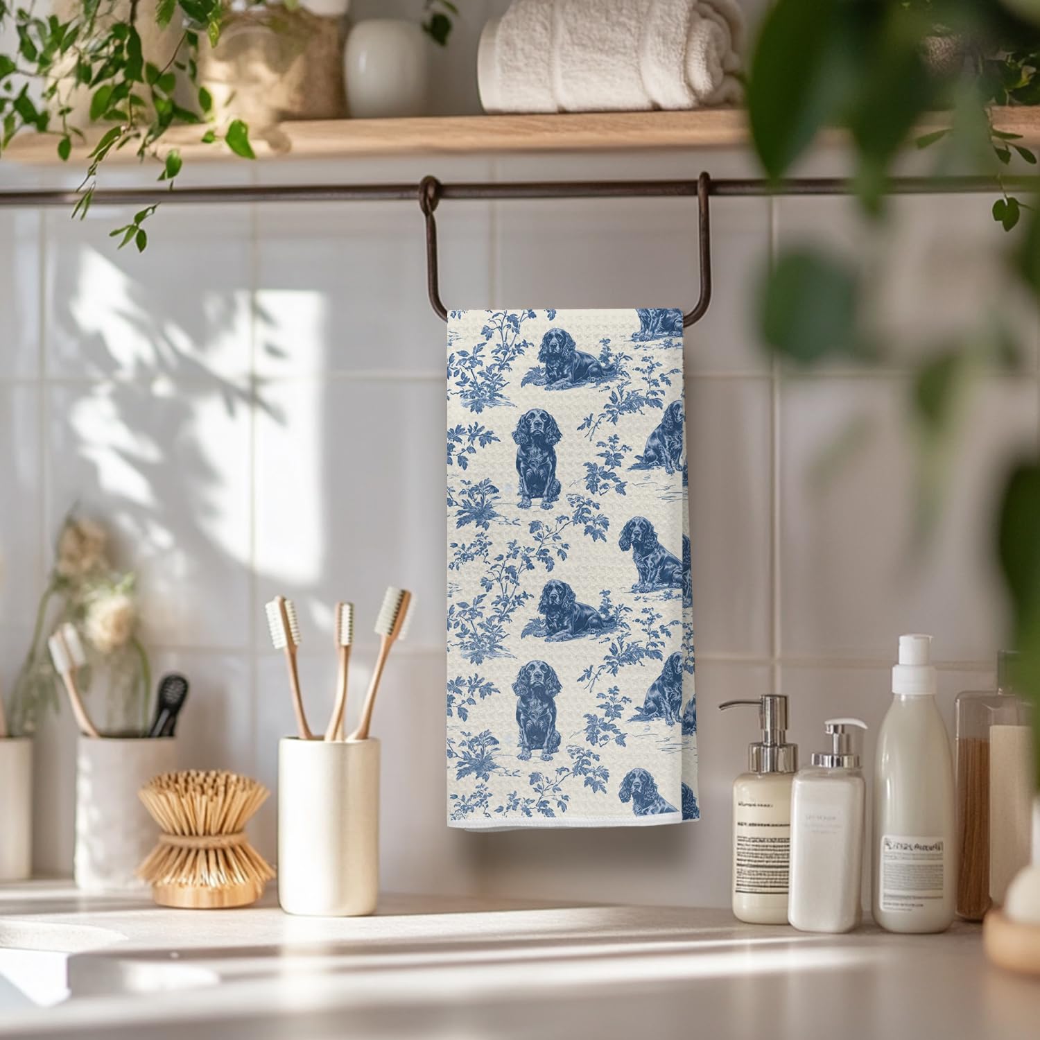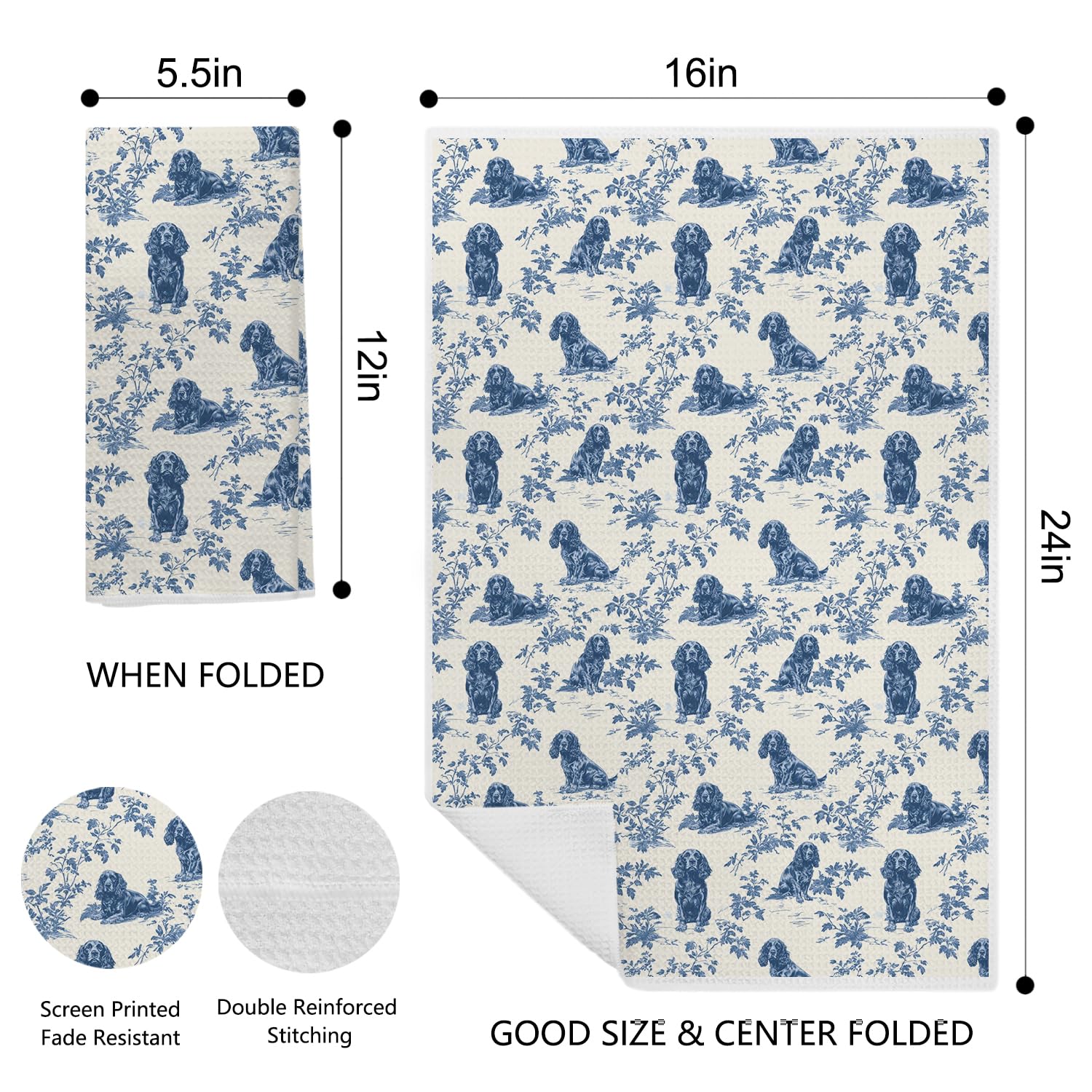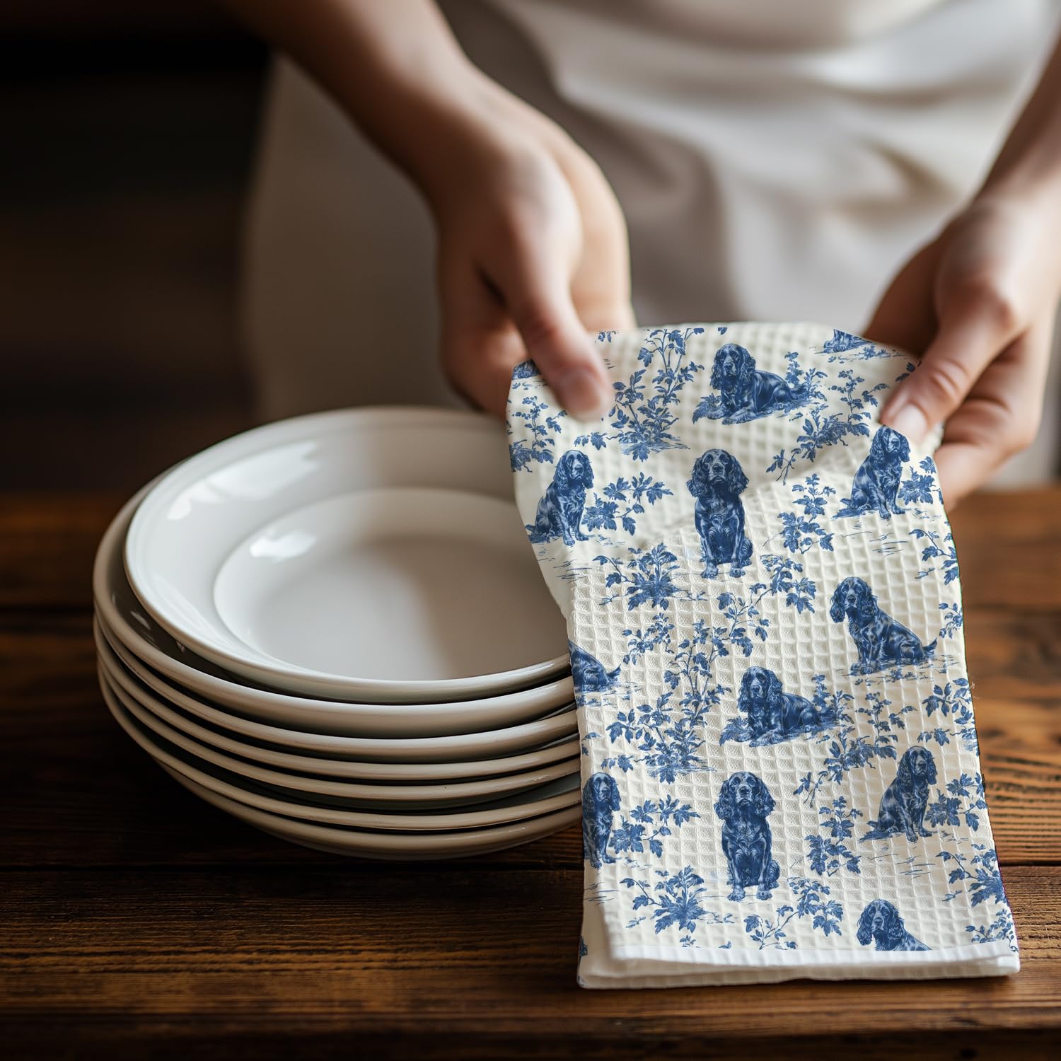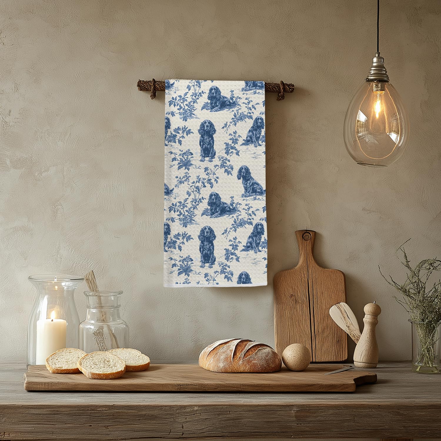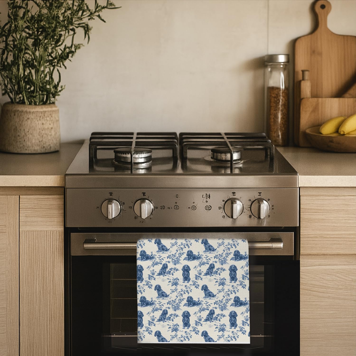 Celebrate the loyal spirit of the Cocker Spaniel with this Chinoiserie-Inspired Dog Kitchen Towel. Designed with vintage blue toile florals and intricate dog sketches, this towel is the perfect mix of elegance and whimsy. it’s both decorative and practical—ideal for drying hands, cleaning counters, or simply dressing up your kitchen. The 16x24 inch size is perfect for everyday use or gifting. Whether you're a proud dog mom or decorating a cozy farmhouse space, this towel adds charm and character wherever it hangs.