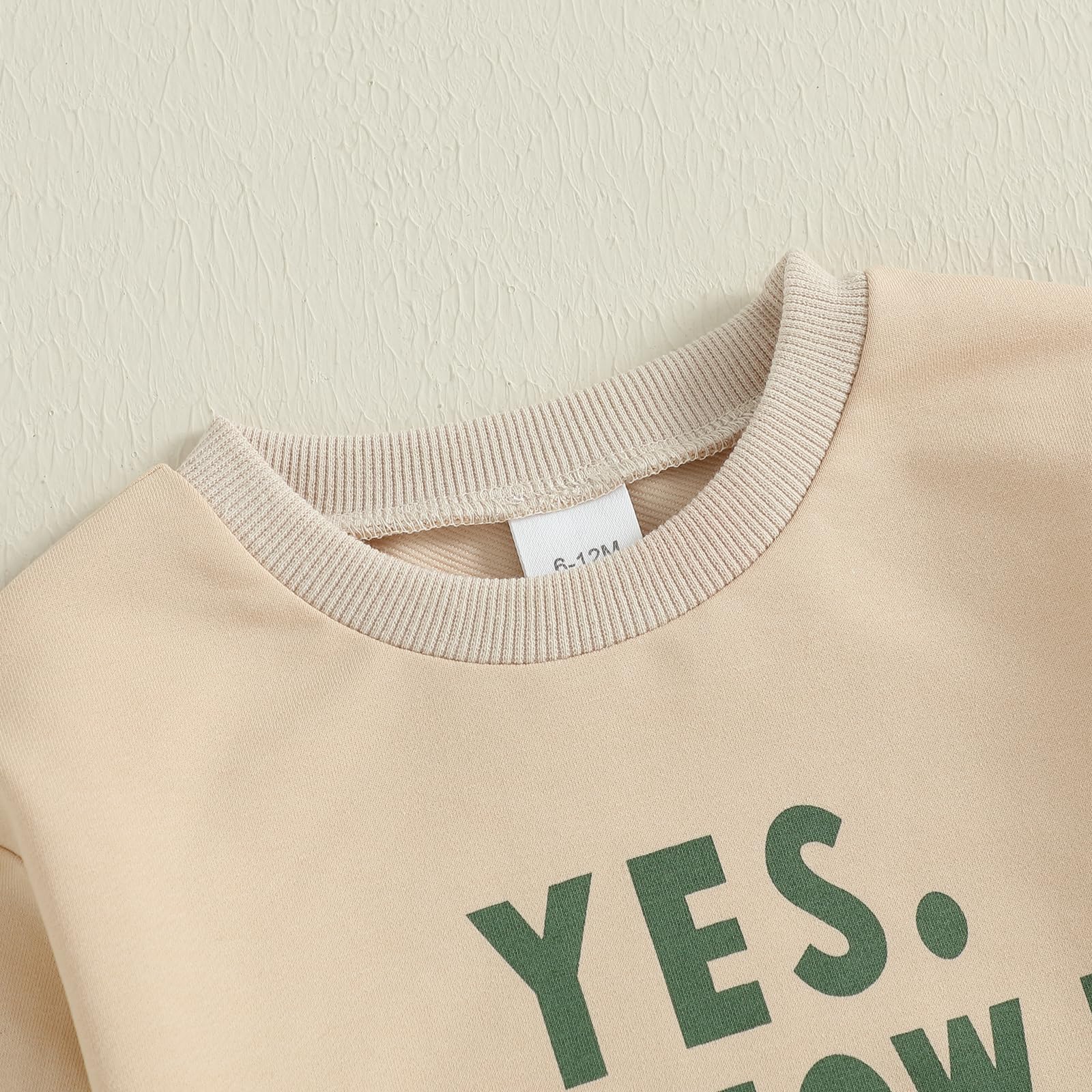 DESIGN:Long sleeve funny letter print pullover sweatshirt matching with solid pants, super trendy