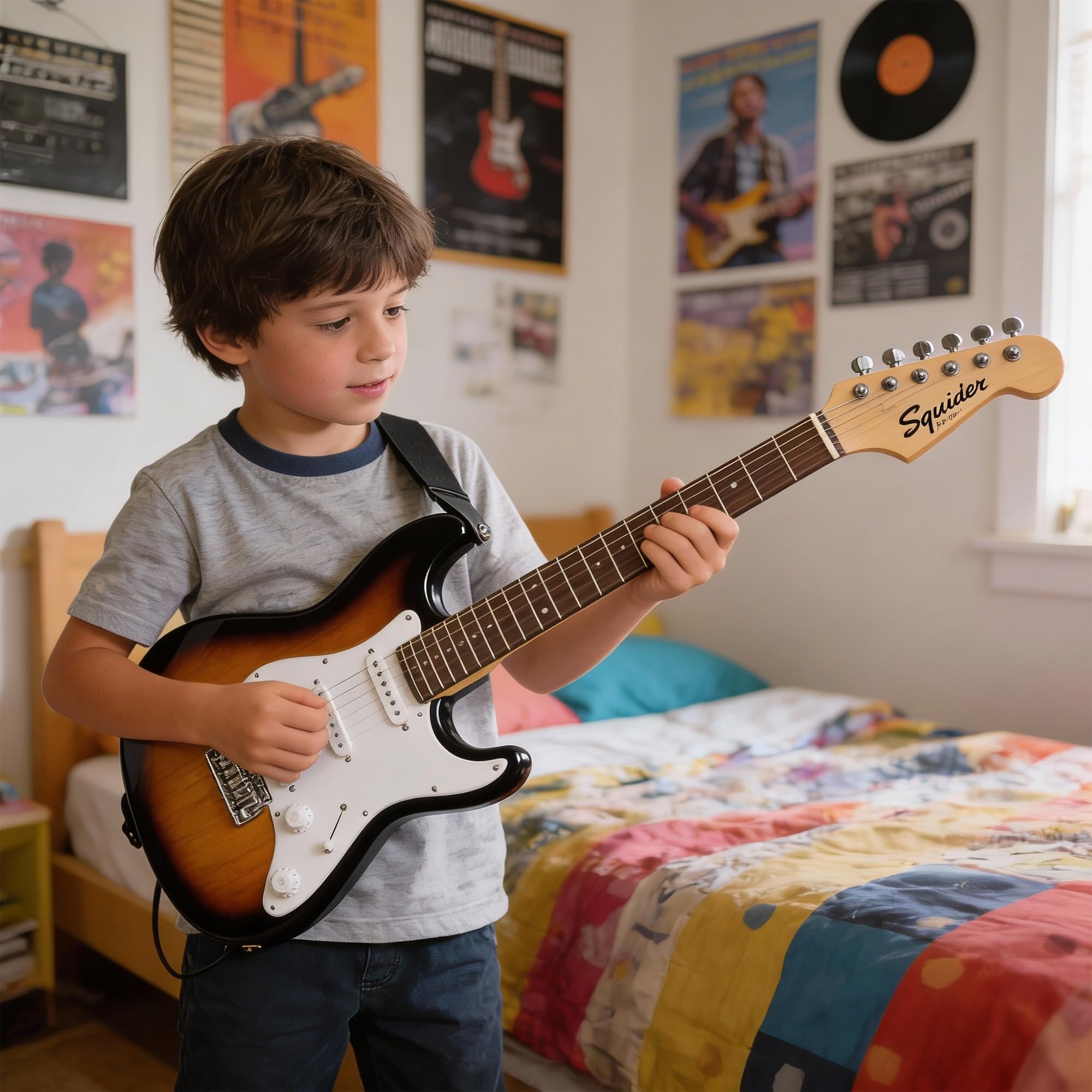 The Squier Mini Stratocaster is the perfect companion for players seeking a reduced-size instrument with classic styling and familiar Fender tone. A smaller version of the Bullet Strat, the newly redesigned Mini is a great guitar for beginners, travelers and players with smaller hands. Highlights include a thin and lightweight body, an easy-to-play āCā-shaped neck profile, a trio of Squier single-coil pickups with 5-way switching for sonic variety, a hardtail bridge for solid tuning stability, smaller strap pins, and a side-mounted output jack. An ideal instrument for children ages 6 to 12 years.