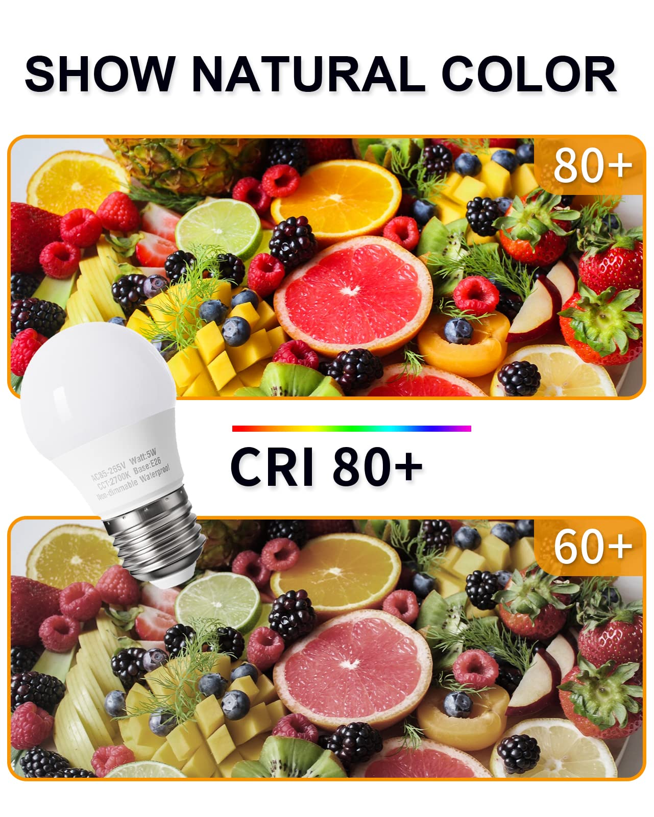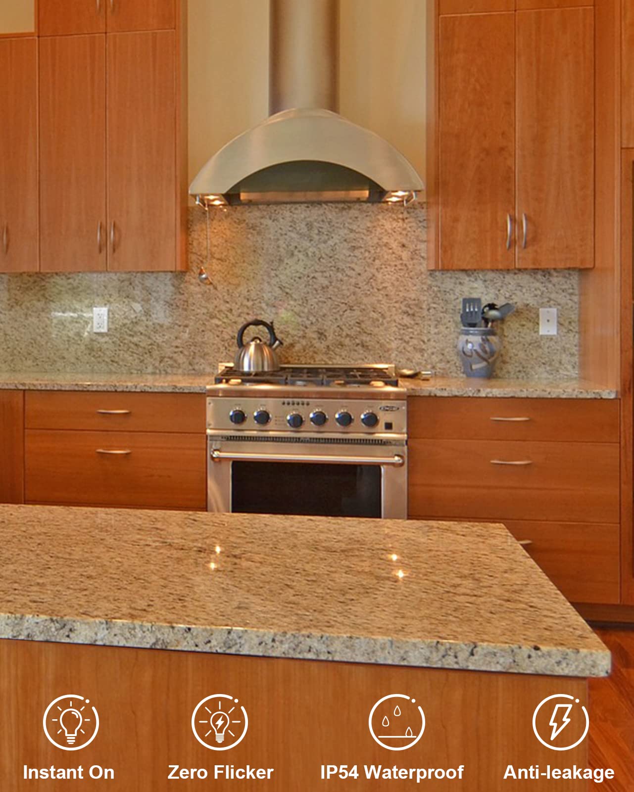 Stable Performance: Turn on to full brightness instantly, zero flicker, no buzzing sounds. IP54 Waterproof. CRI>80, rendering the true color of goods. NOTE: Pls don't use them with a dimmer switch or use them in the oven.