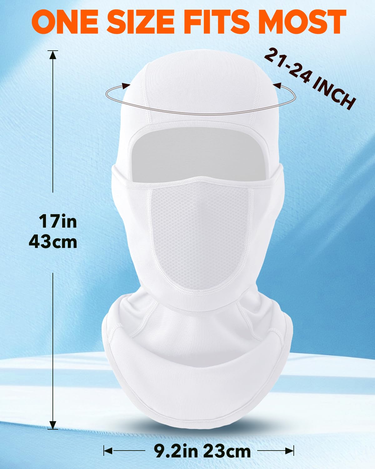 UNIVERSAL SIZE: Excellent elasticity and one size fits most no matter you are men, women or teens. Size is : 17 * 9.2in(L*W). Head size is about 21-24 in. Hand wash is more recommended and in this way can extend its using time.pls allow 2-3CM differs due to manual measurement.
