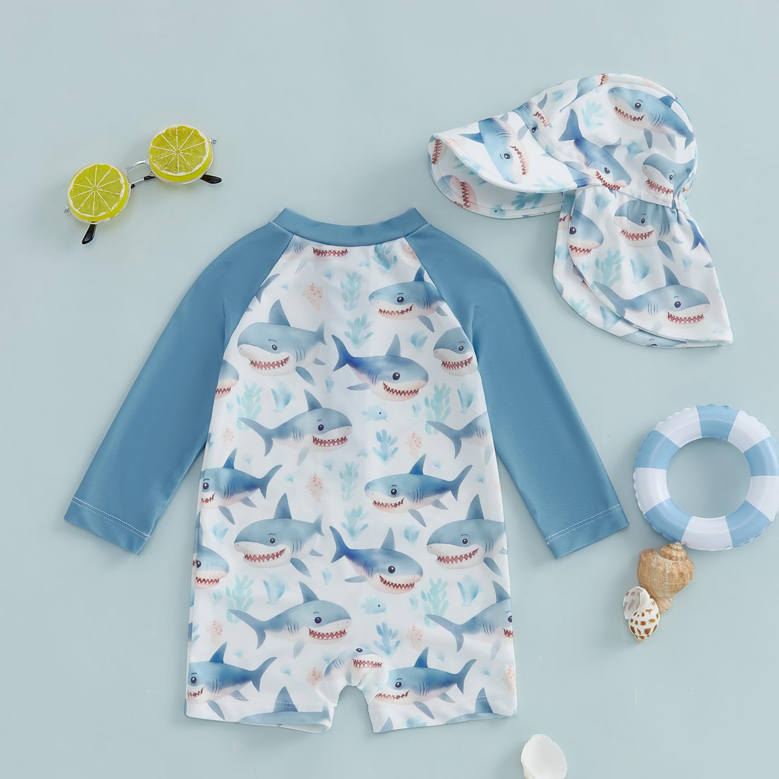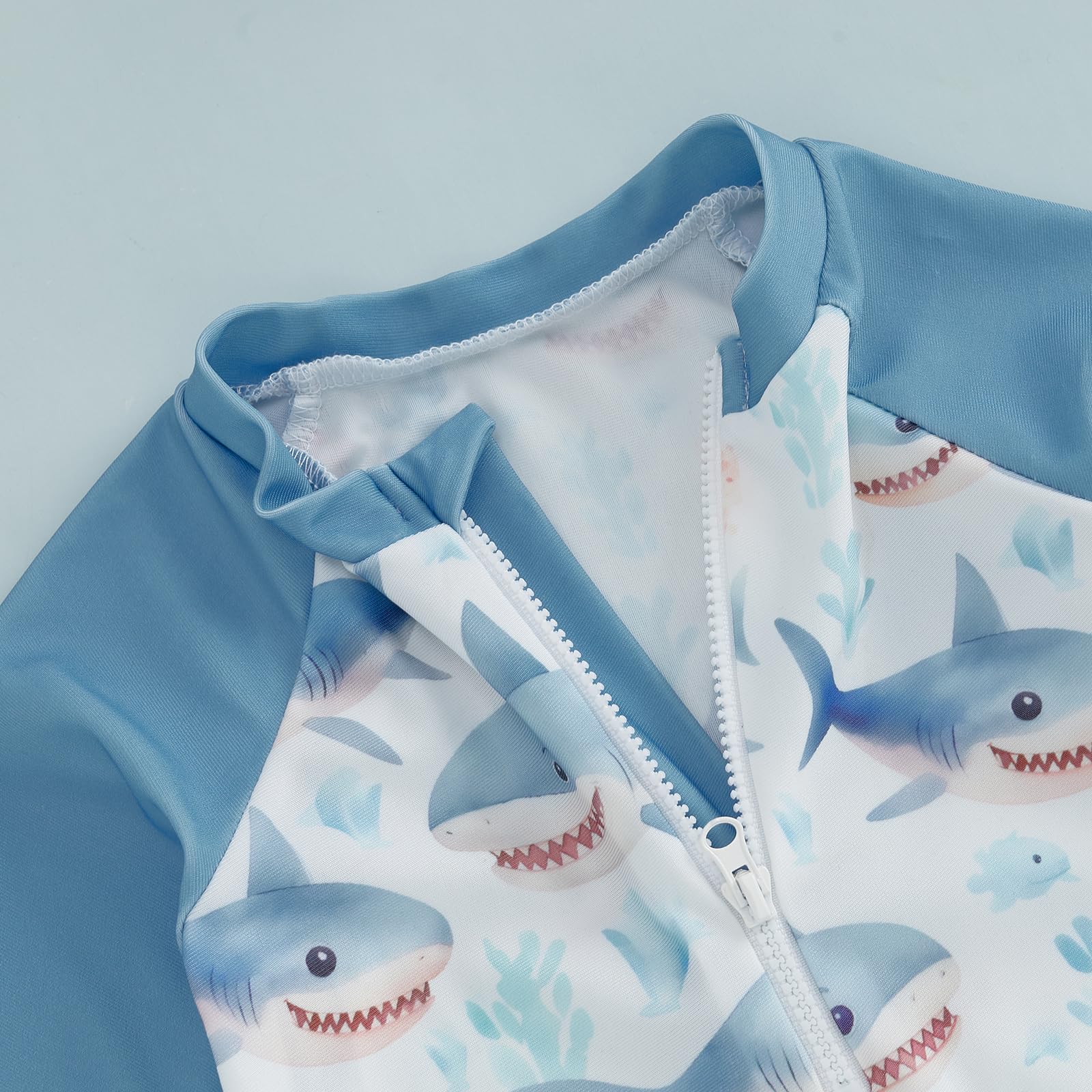 Design: Toddler bathing suit boy, infant long sleeve swimsuit boy, round neck, back/front zipper closure for easy on and off, newborn swimsuit boy, dinosaur/marine animal print, super cute and lovely, your little boy will stand out in the crowd